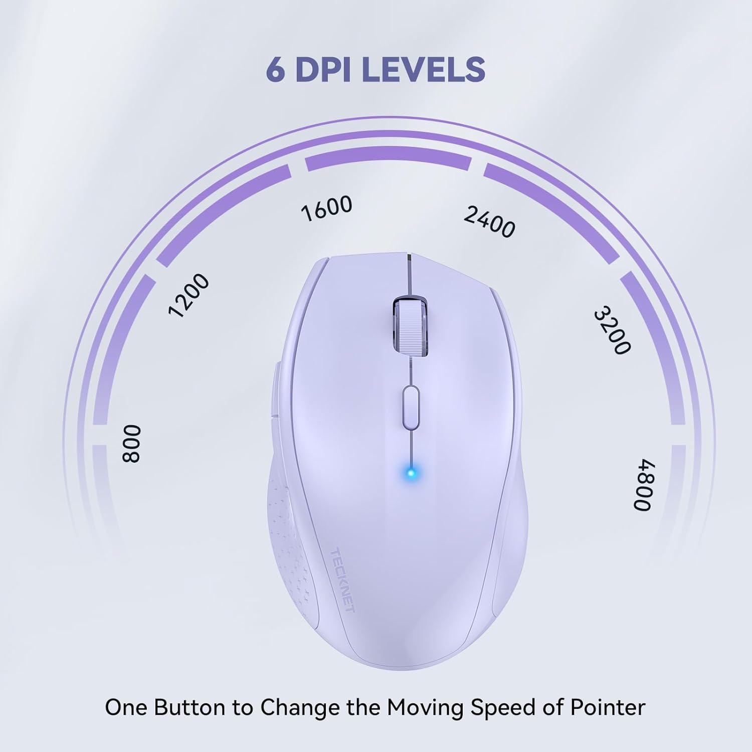 TECKNET Bluetooth Mouse, 4800 DPI Wireless Mouse, 2-Year Battery 6 Adjustable DPI, 6 Buttons Compatible with Laptop/Windows/Computer - Lavender