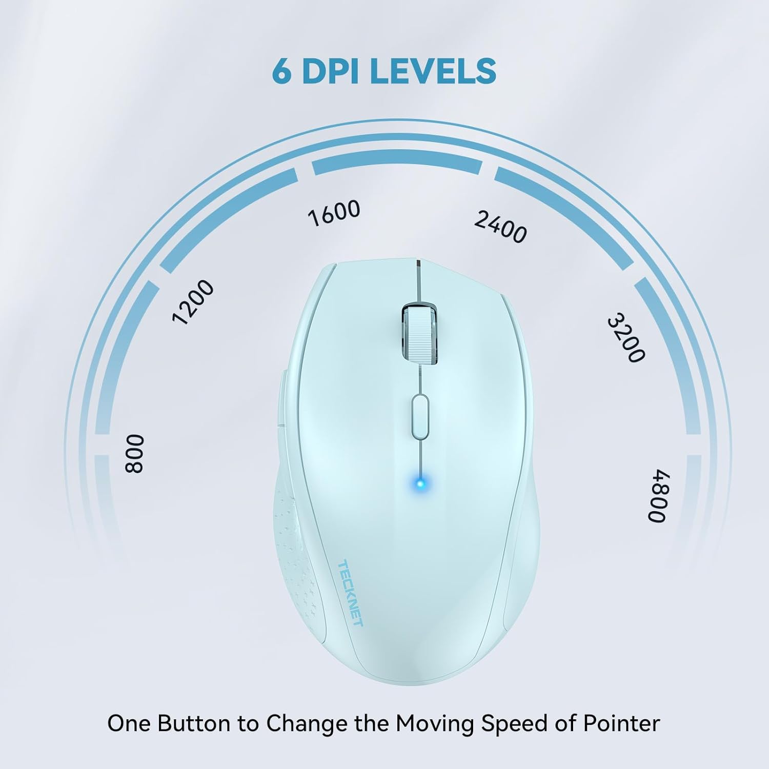 - 6 DPI and 6 Buttons: TECKNET bluetooth mouse has 4800/3200/2400/1600/1200/800DPI. Six efficient buttons and six adjustable DPI levels that allow you to freely control the mouse speed. Connects directly to Bluetooth-enabled device laptop computer or PC without the need for a receiver.