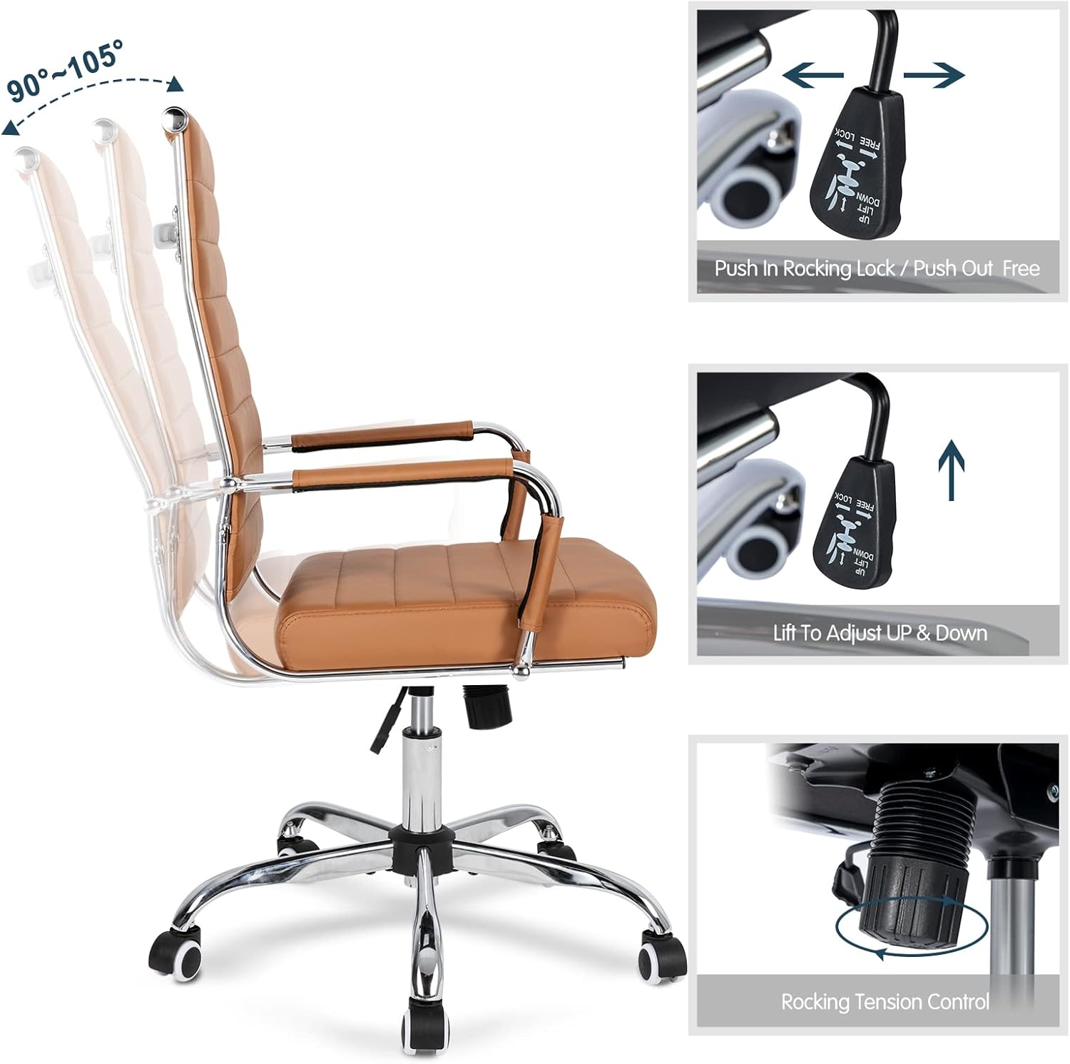 Home Office Chair Ribbed, Modern Leather Conference Room Chairs, High Back Executive Computer Chair, Ergonomic Office Desk Chair, Adjustable Swivel Chair with Arms (Brown)