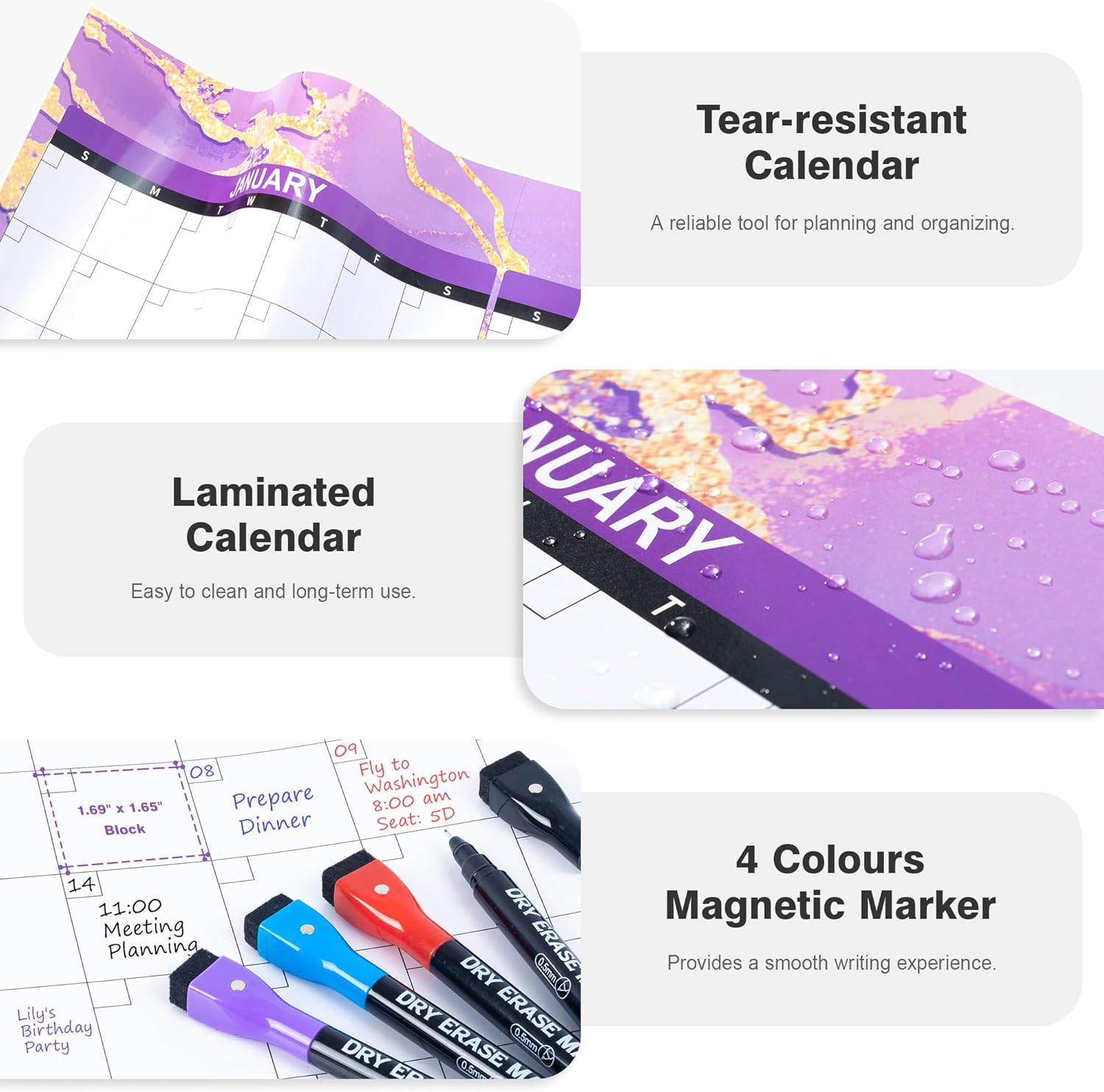 - ⨠Dry Erase Wall Calendar : is made of PET Film and 300 grams Copperplate Paper, providing a durable surface that resists scratches and smudges, while the sturdy Copperplate Paper backing keeps it in place without curling.