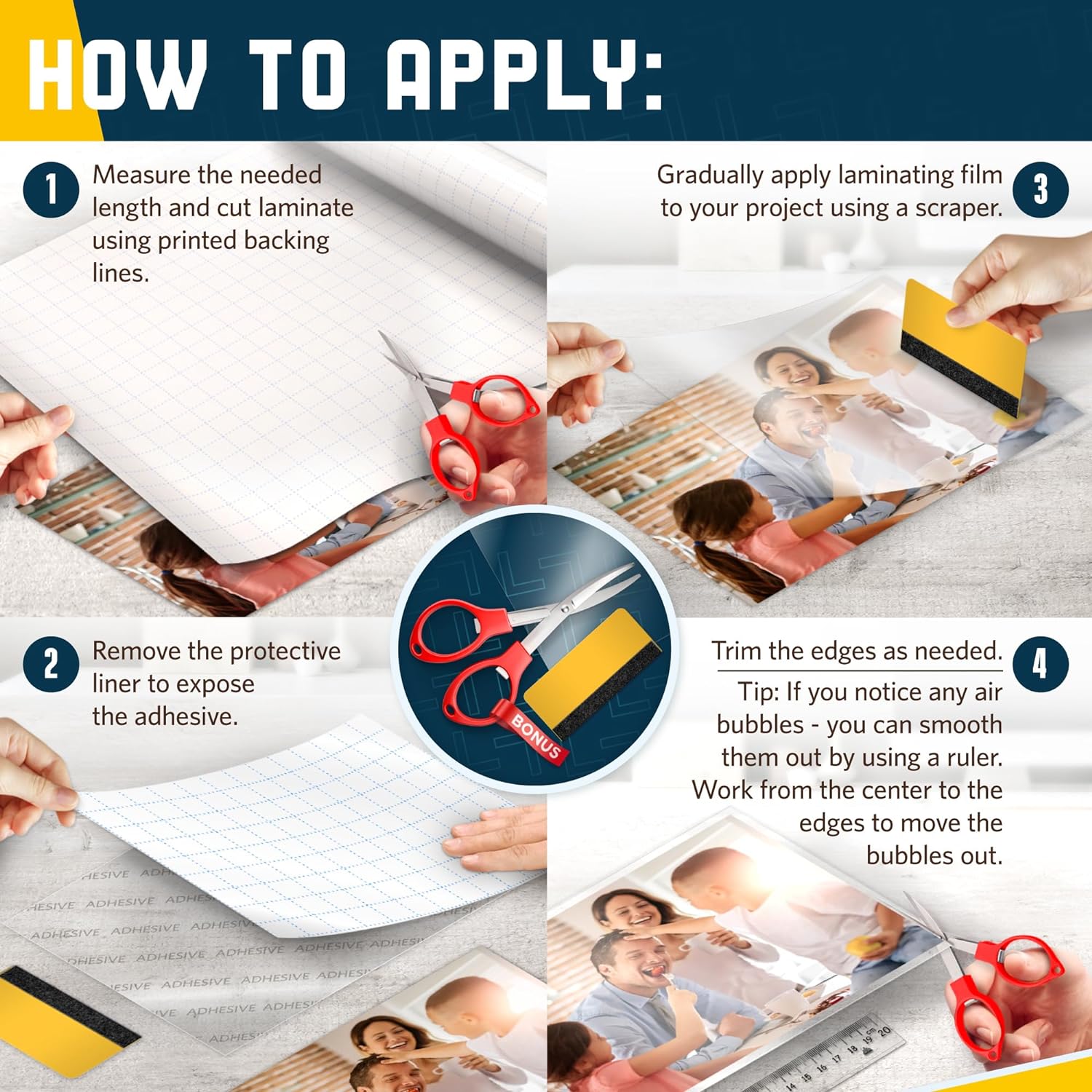 - ๐EASY TO USE: With a clear contact paper peel and stick design, these removable contact paper rolls are easy to apply, ensuring smooth, bubble-free results. Whether youโre a beginner or an expert, self adhesive laminating roll makes laminating quick and hassle-free.