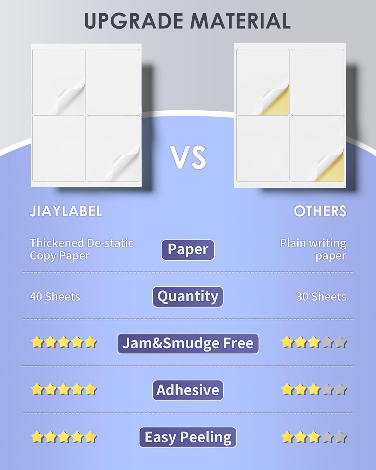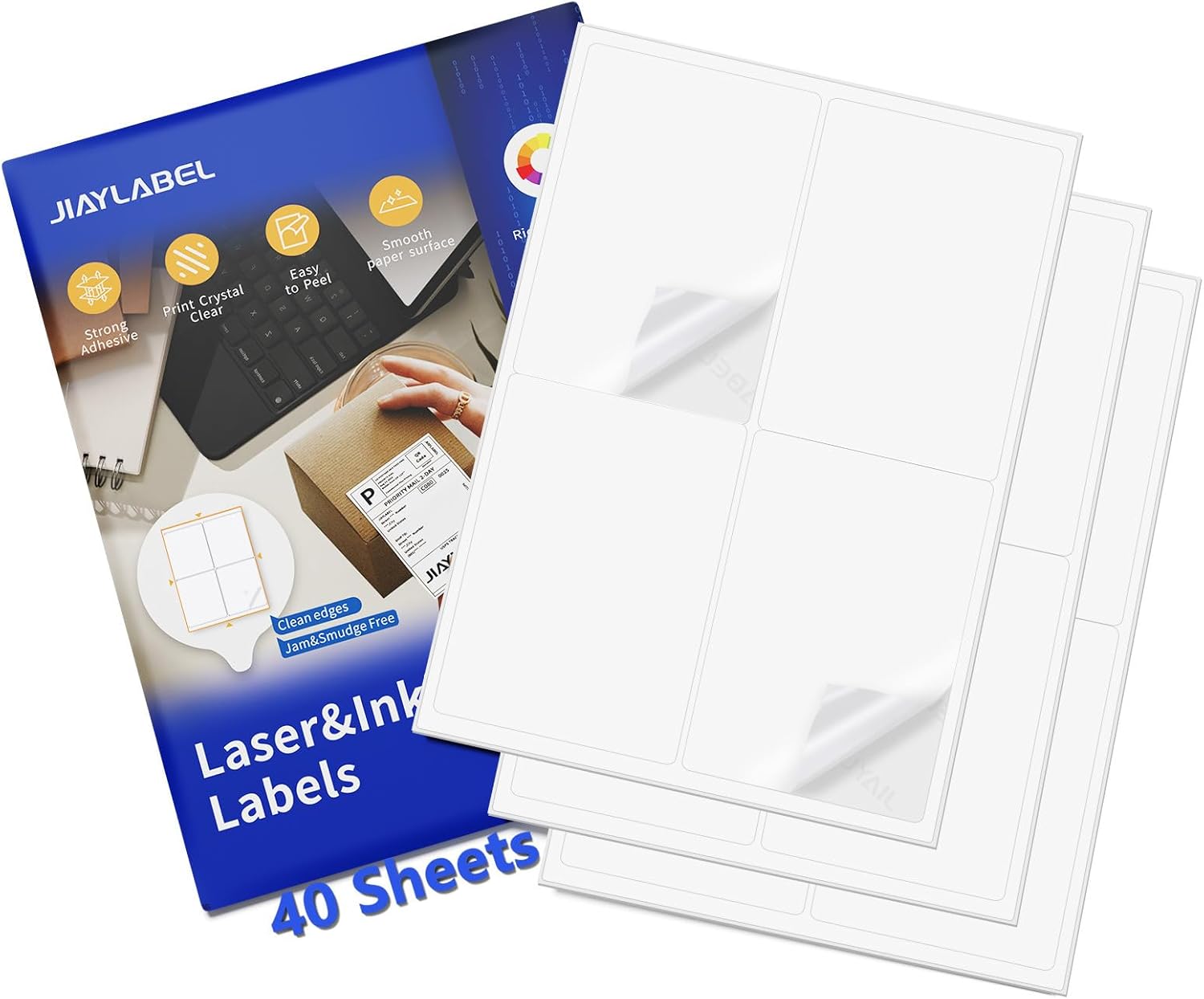 - Commercial-Grade Labels: 4”x5” matte white printable stickers, 4 labels per sheet, 40 sheets. Smooth surface, crisp clear print, self-adhesive, writable, quick dry, perfect for your business and your life