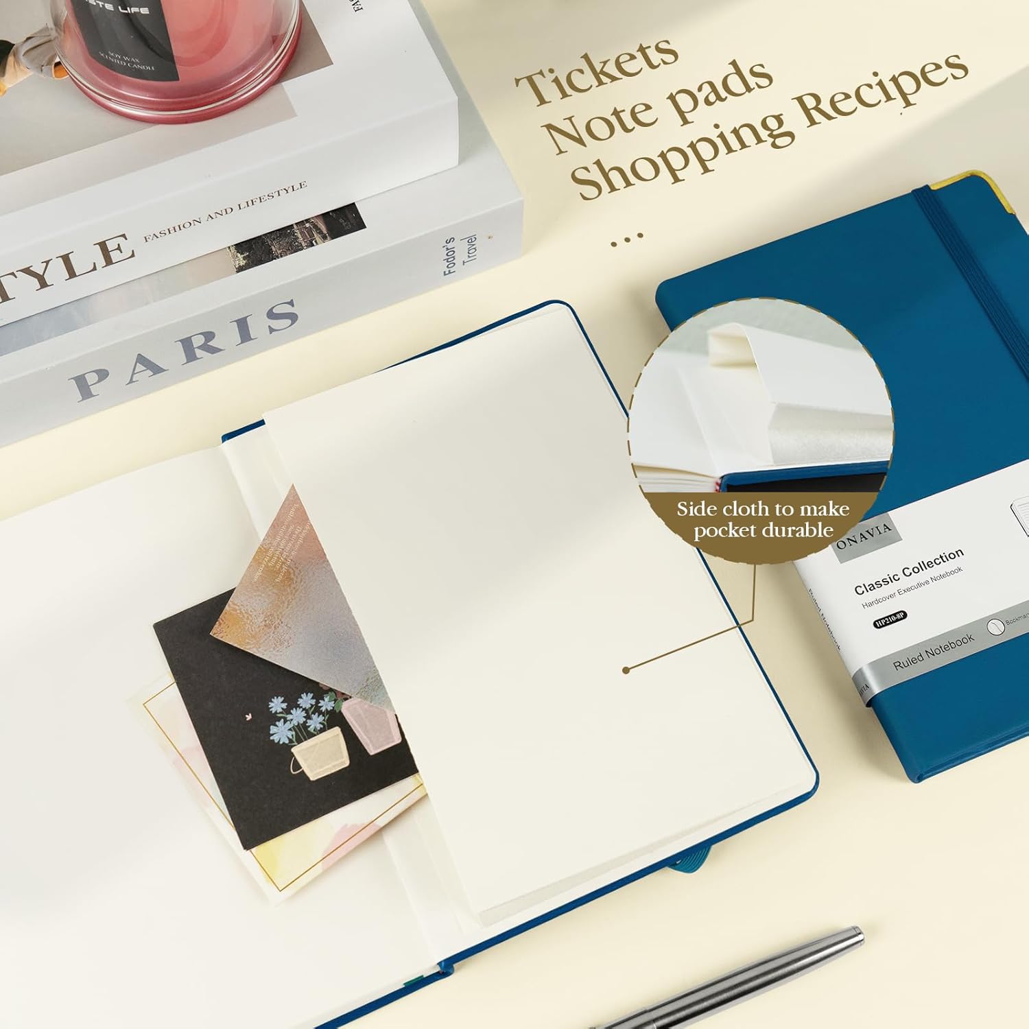 - Hardcover Journal Notebook: ONAVIA a5 journaling notebook features a durable and water-resistant faux leather cover, and 80 sheets/160 pages high-density hard thick paper. The exquisite golden corner design not only protects the edges of the lined notebook from damage caused by external impacts but also enhances its aesthetic appeal and lends an air of sophistication
