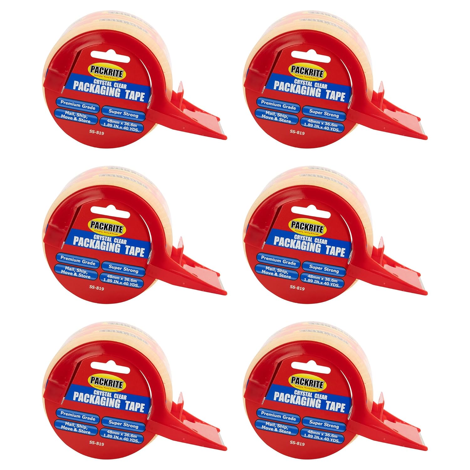 Crystal Clear Packing Tape with Dispenser, 6 Rolls of Heavy Duty Shipping and Moving Packaging Tape, 2 Inch x 40 Yards Each (240 Yards Total)