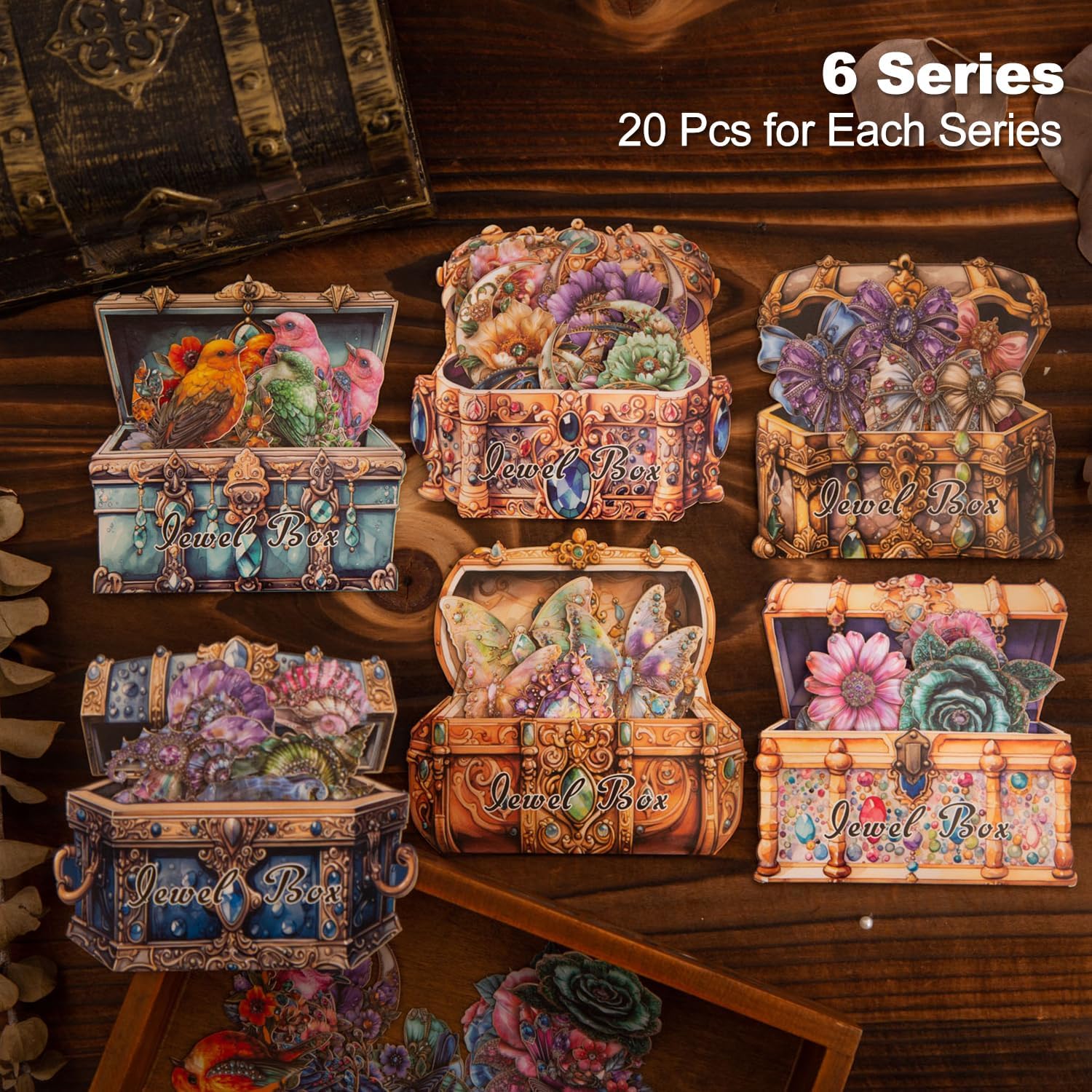 Pearl Treasure Box Sticker Set, 120Pcs Retro Cardstock Stickers for Scrapbooking, Journaling, DIY Crafts, and Art Decoration