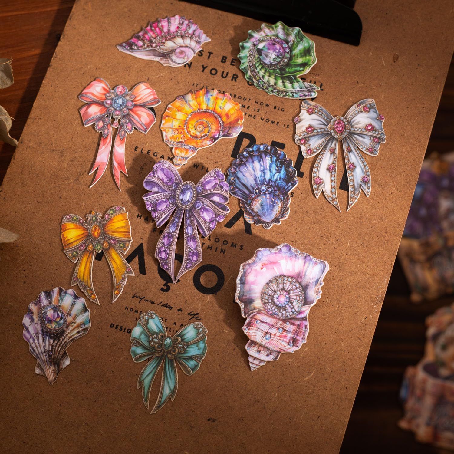 - Intricate Shell & Gemstone Designs: Elevate your creative projects with exquisite stickers featuring shells, butterflies, floral crescent moons, and birds. This set of 120 hard card stickers showcases rich colors and highly detailed patterns, ideal for adding an elegant touch to scrapbooks, journals, planners, and more