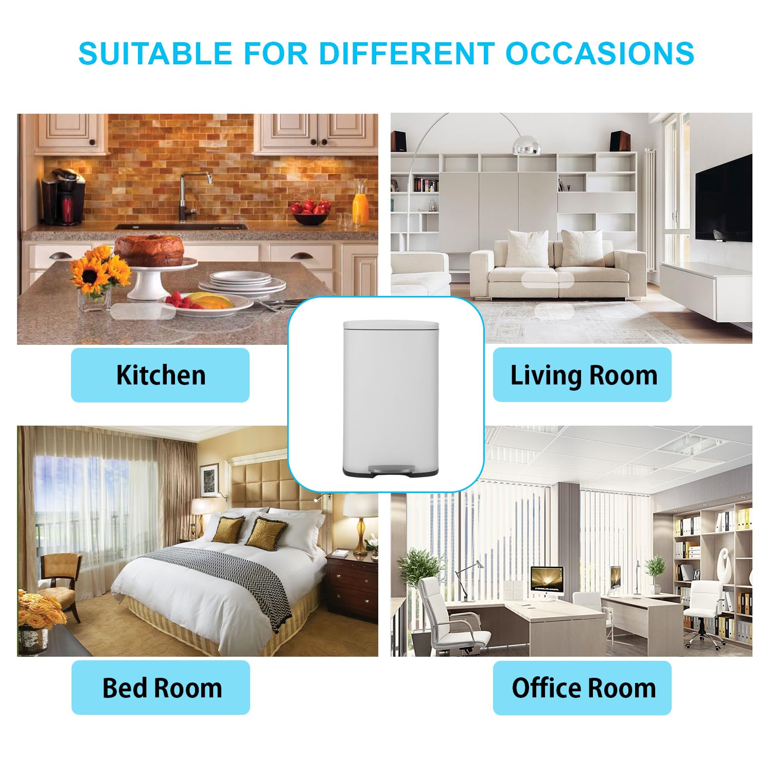 - Versatile Design : This trash bin designed fit for any tight space from under the kitchen counter to a dedicated recycling area.Suitable for various environments from kitchens to offices to outdoor spaces a stainless steel trash can fits seamlessly into any setting while remaining easy to maintain.