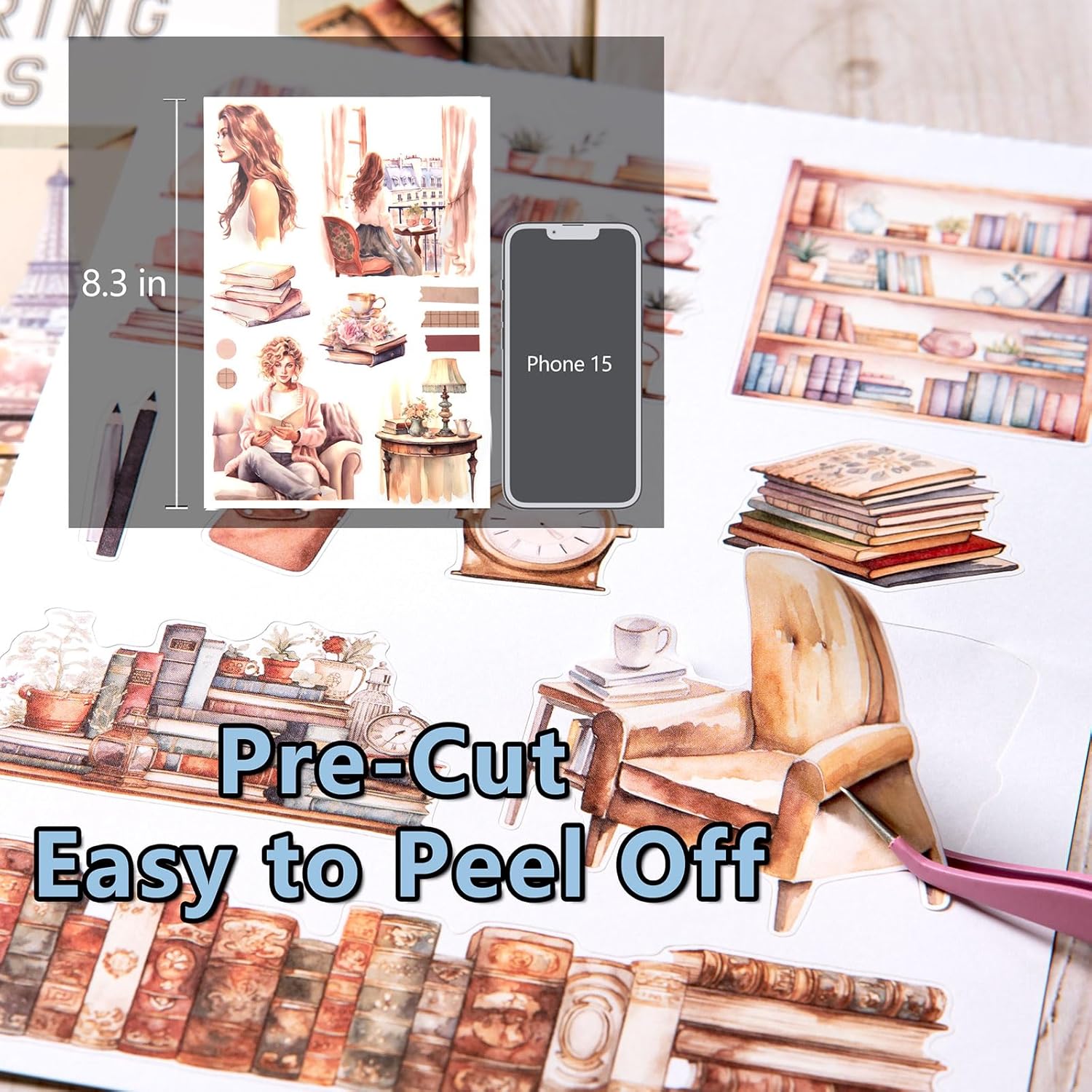 YagCu Journaling Sticker Book, Reading and Writing Scrapbook Stickers, Junk Journal Supplies, Pre-Cut Aesthetic Scrapbooking for Women, Collage Decorative Ephemera Bullet Planner DIY Arts