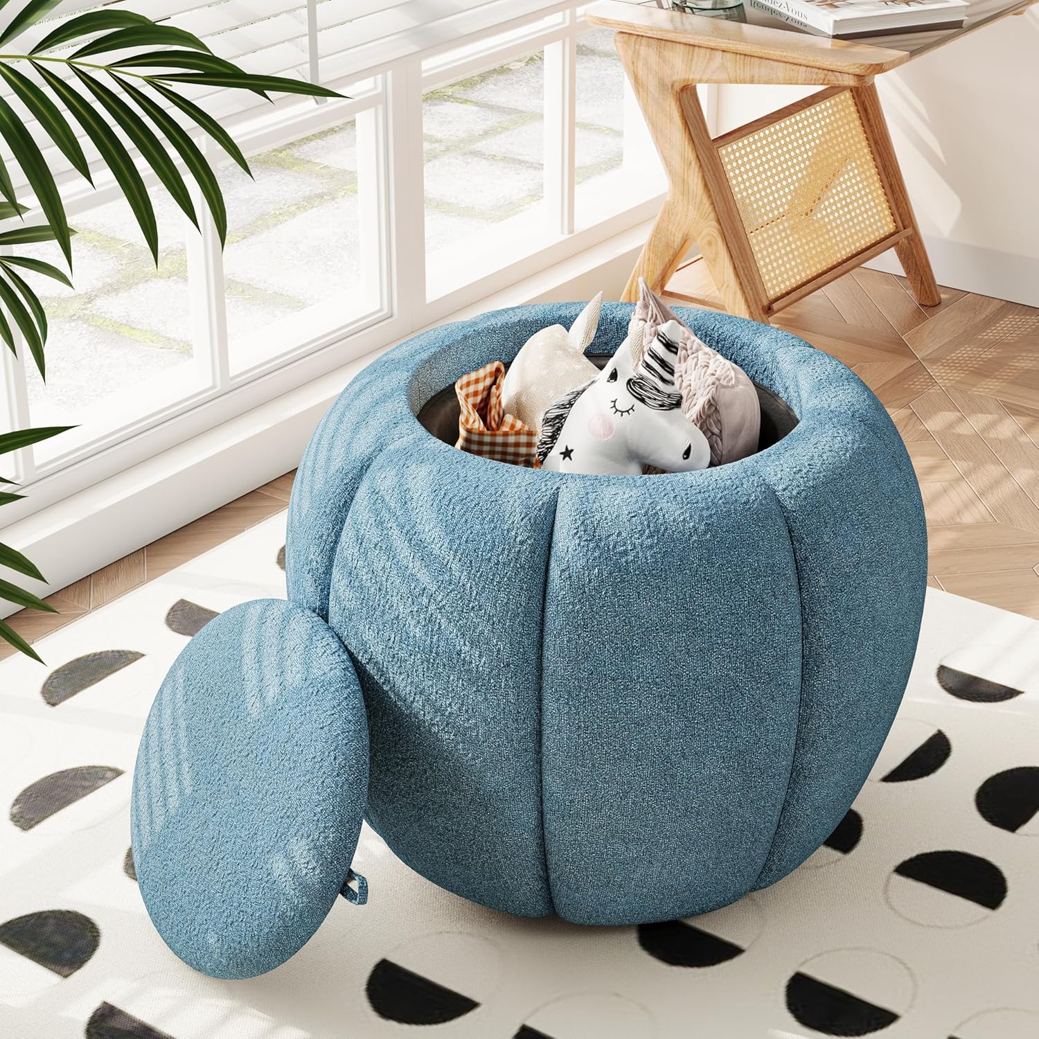 - 【Large Storage Space】 The stool serves as a ottoman with storage for living room to store children's toys, blankets, cushions, books, clothes, etc. It helps to keep the room organized and neatly hide clutter