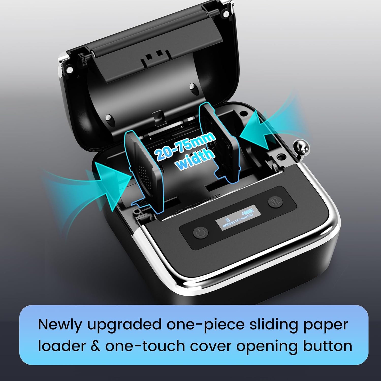 - Convenient and User-friendly Bluetooth Label Printer: With its integrated paper loading structure, installing labels has never been easier. Weighing only 390g, this portable label printer easily fits in your pocket, bag, or backpack. Experience the convenience of printing labels anytime, anywhere with the M250 thermal barcode label printer