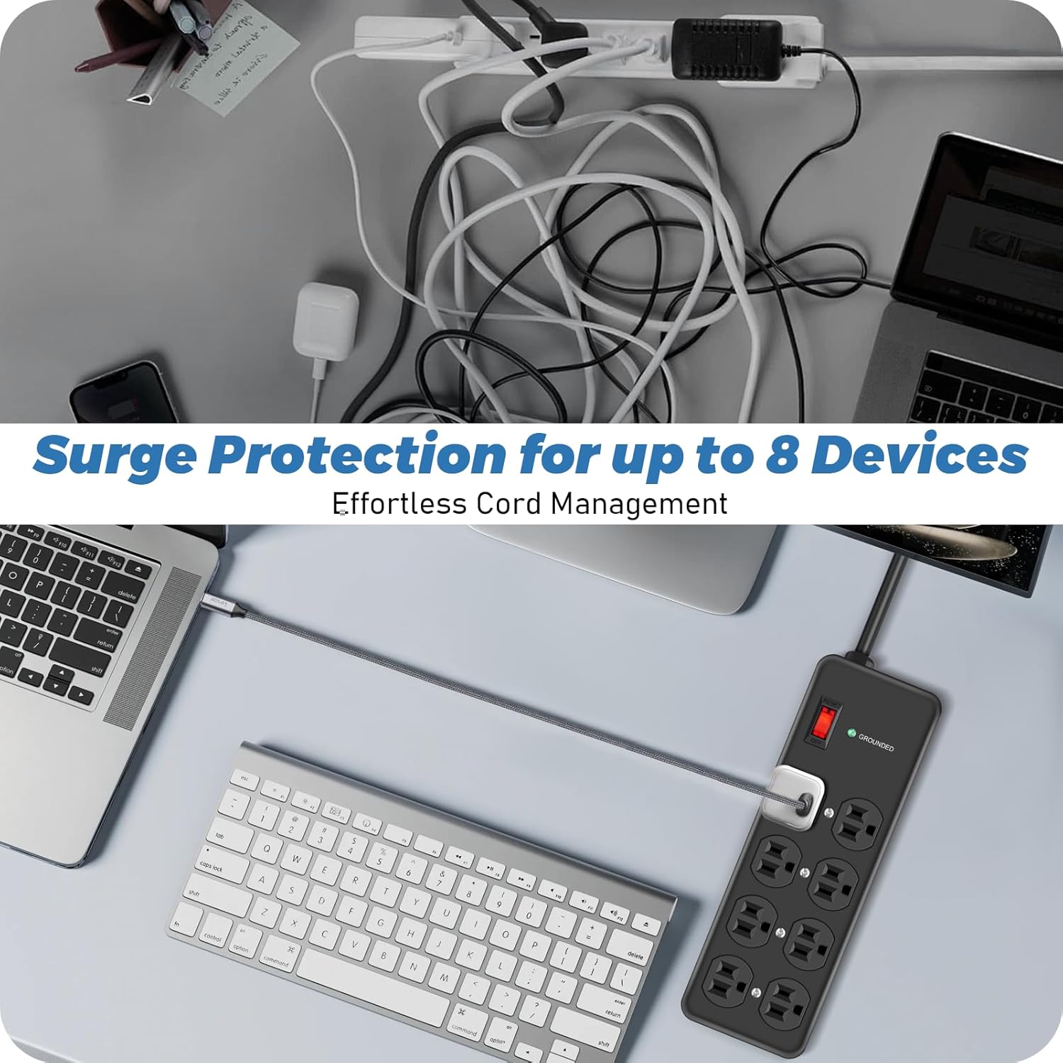 - Multi-Outlet Power Board:8 AC outlets with 1.6 inches of space between them are easy to use for a variety of devices to meet more power needs in your daily work. No need to worry about crowded location, rational use of outlet space, suitable for home, office, store, game room and so on.