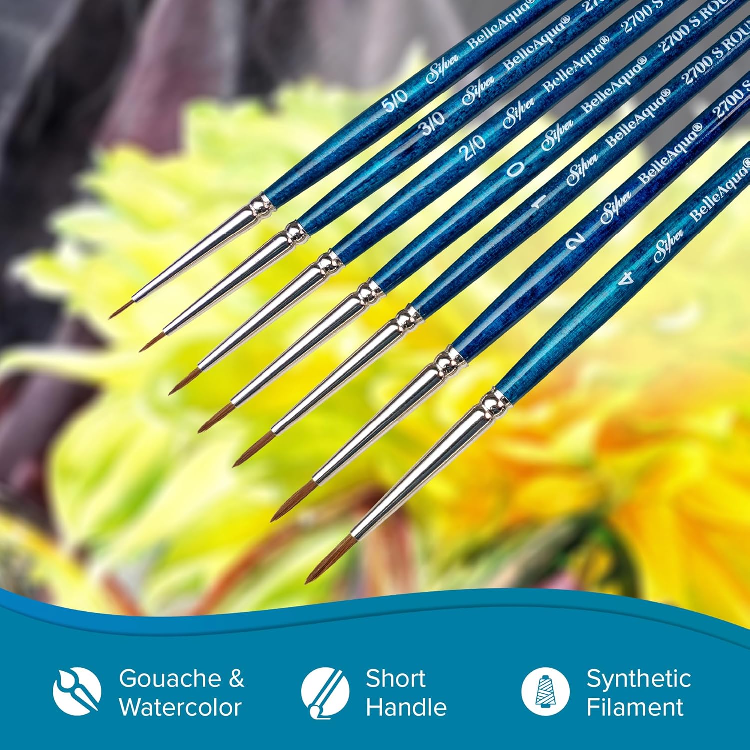Silver Brush Limited BA-2756S BelleAqua Cats Tongue Brushes, 2pc Watercolor Brush Set, Professional Soft Synthetic Red Sable Filament Cats Tongue Paint Brush Set, Short Handle, Sizes 4 and 8