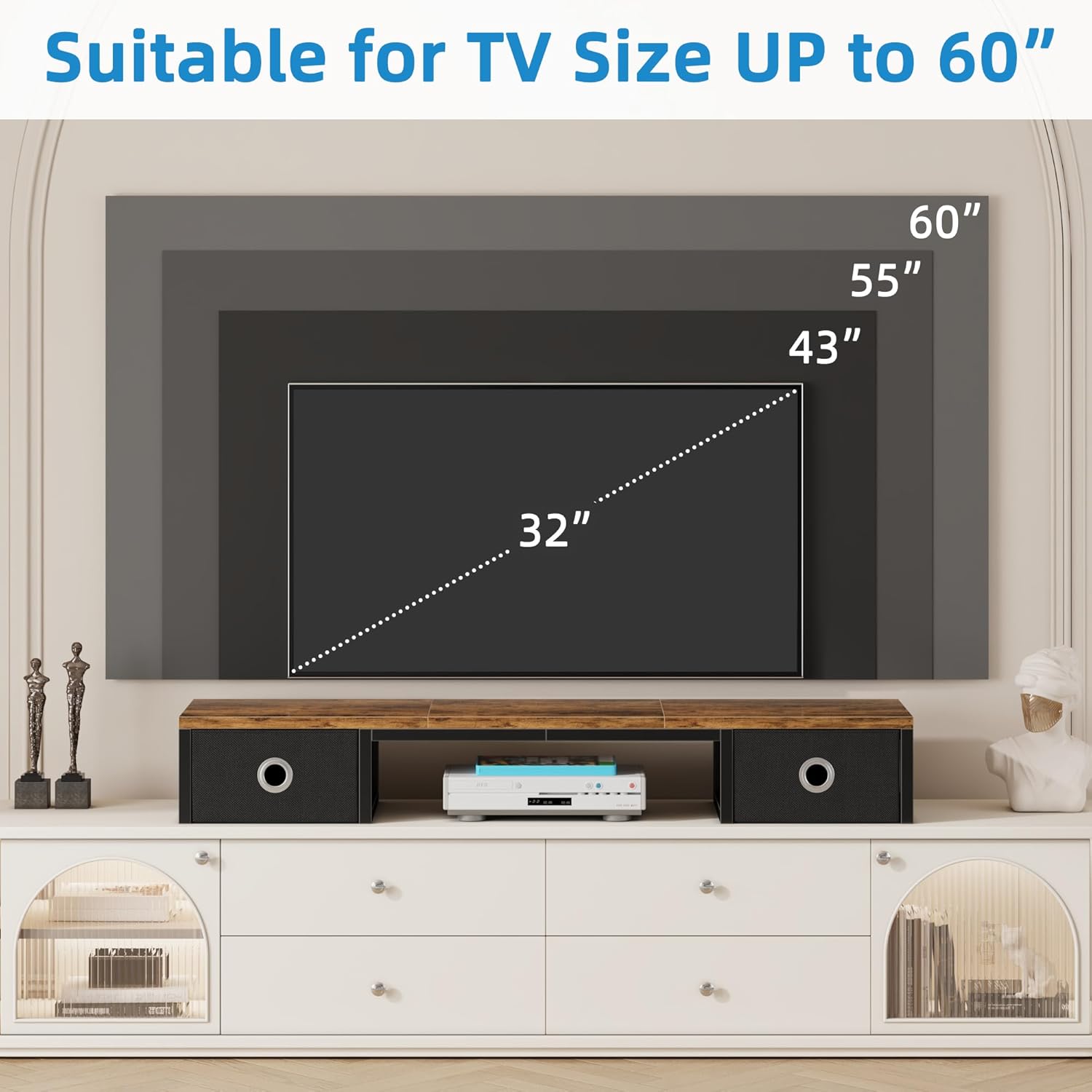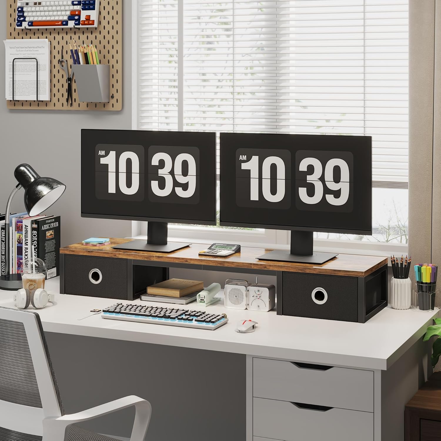 45" Large TV Riser with Fabric Drawers for 32-60 inch TV, TV Stand Riser with Steel Legs, Tabletop TV Riser Shelf, Monitor Stand Riser for Home Office, Rustic Brown