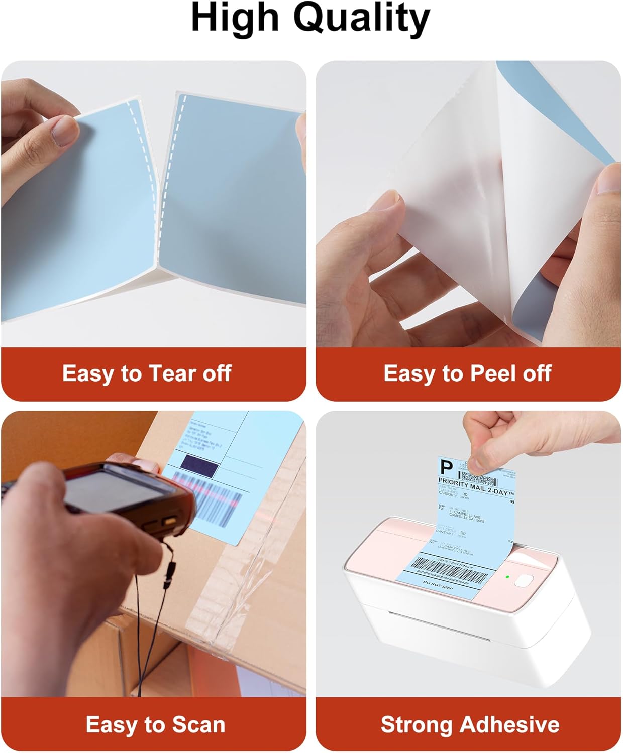 Phomemo 4x6 Thermal Labels for Shipping Label Printer - 500PCS Blue Mailing Labels - 4x6 Direct Thermal Label Fanfold Compatible with Rollo,MUNBYN,JADENS,POLONO,Nelko - Water/Oilproof - NO BPA/BPS