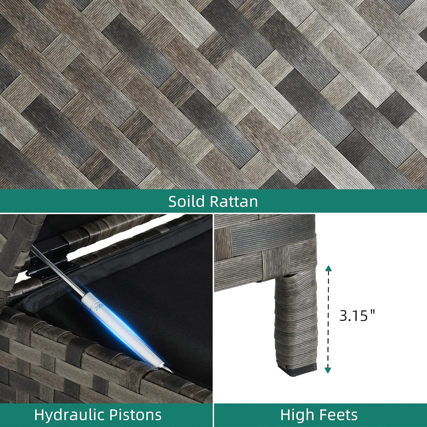 - Robust Dual Construction: Crafted with a powder-coated steel frame and woven wicker, this deck box is highly protecting from sun, water, and rust, blending seamlessly into any setting.