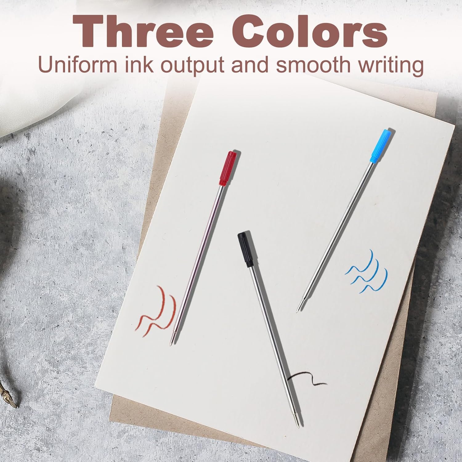 0.7 mm Ballpoint Ink Twist Pen Refills, 15 Pcs Medium Point Metal Smooth Writing Replaceable Ink Refill, Stationery Compatible for Cross Ballpoint Replacement (4.6in M) (Black+Red+Blue, 30)