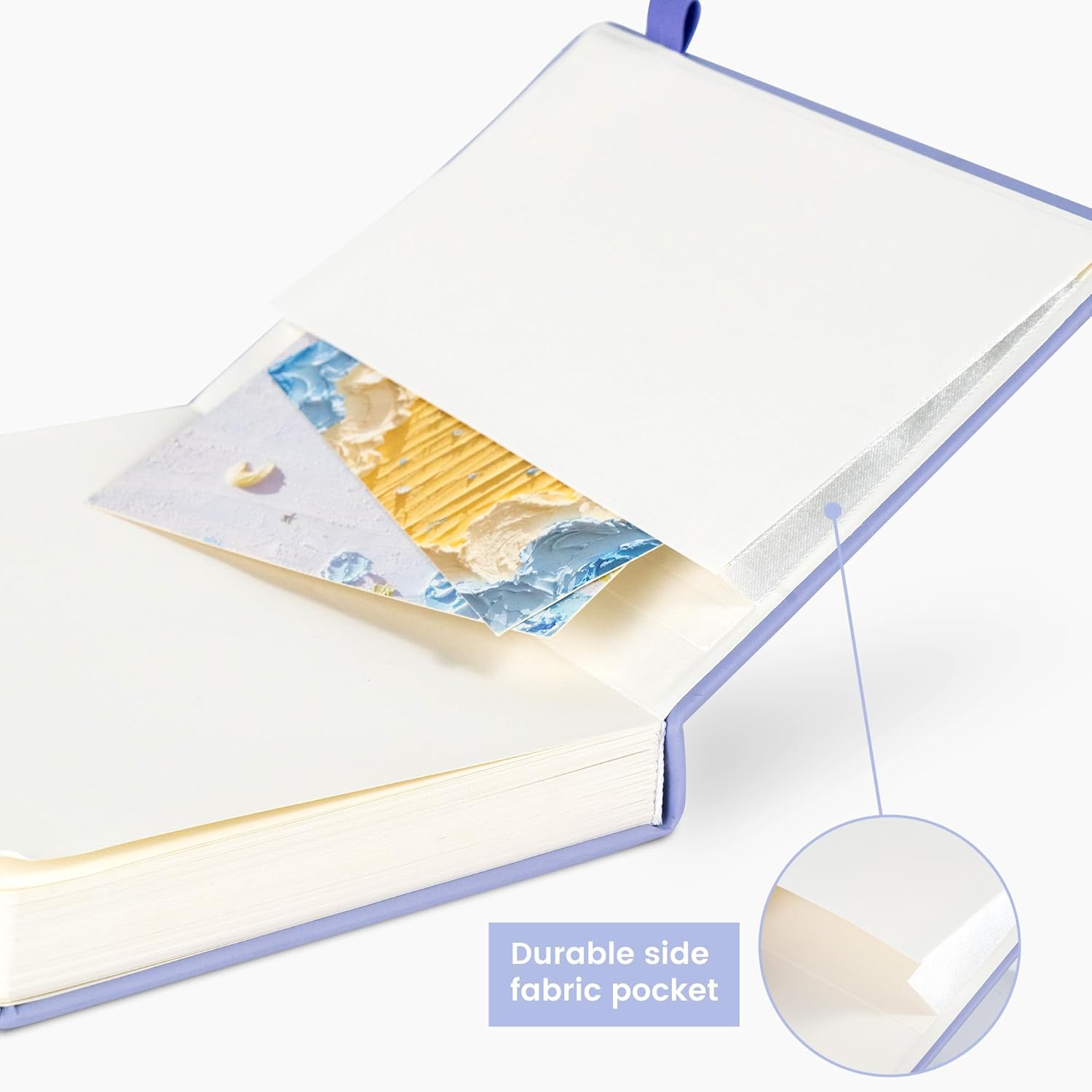 - Large Notebook with Pockets - Journal for women comes with a paper pocket and gold trimmed fabric to make the pockets more durable. Journals for writing have colorful ribbon and elastic band and a pen insert on the right side of the journal.
