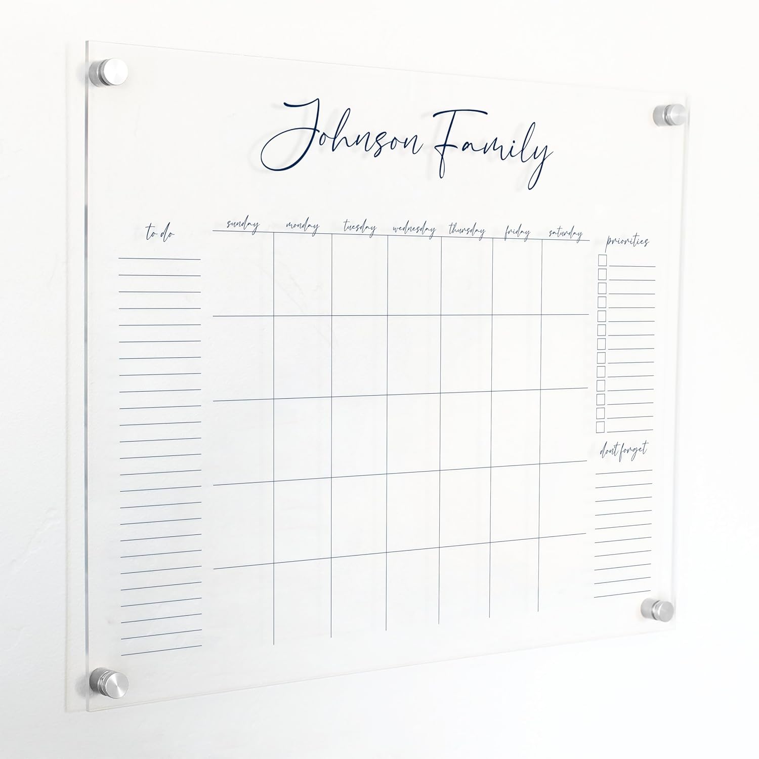 Personalized Clear Acrylic Calendar for Wall, Calendar Whiteboard for Wall, Dry Erase Wall Calendar, Wall Calendar Organizer System for Home (Cursive, Navy, 23"W x18.5"H)