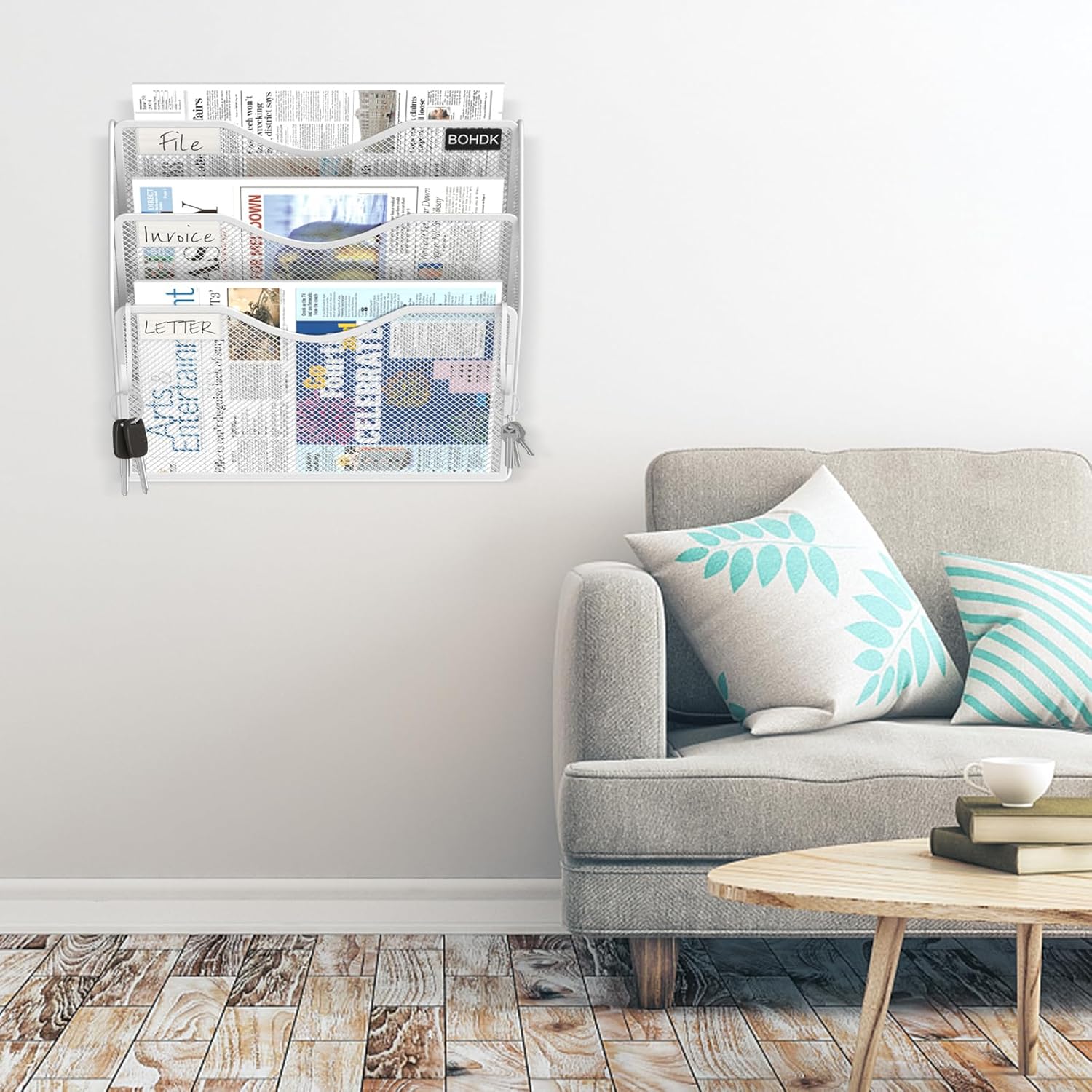 - 【Wall Mount/Door Hanging Organizer】No assembly needed. Equipped with mounting screws and door hooks, the file provides you more creative ways to use it. Not only can you utilize the vertical space anywhere, but also you can hang it on the cabinet door without mounting. Perfect for your bills, tablets, notebooks, portfolios, photos, letters, magazines and so on.