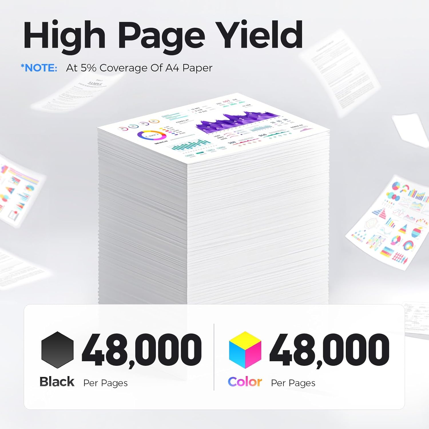 - High-Yield: up to 48,000 pages per 6510/6515 Drum Black Drum and 48,000 pages per 6510/6515 Drum Color Drum (Total 192,000 pages, 5% coverage),with High Yield Version 6510/6515 Drum.