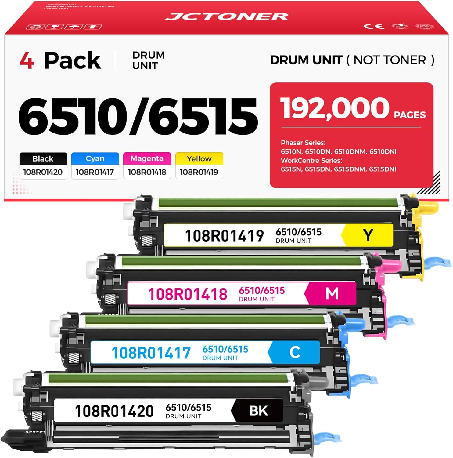 - Item Name: JCTONER Compatible Replacement for 6510/6515 Drum Unit Kit 4 set (with chip).