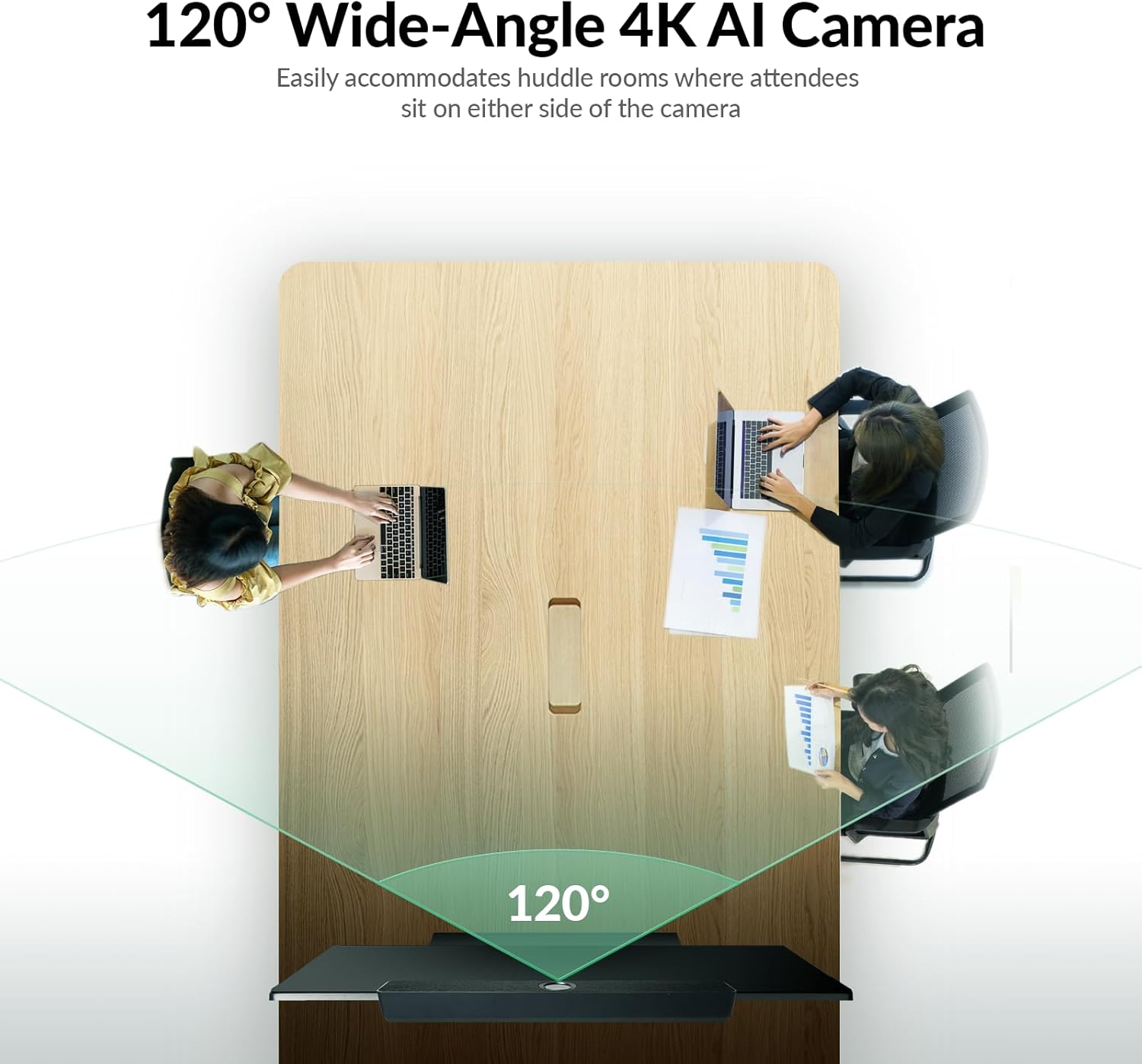 WYRESTORM 4K Conference Room Camera with AI Auto Framing, Presenter & Speaker Tracking, 120° Wide-Angle Webcam, 5X Digital Zoom, 4-Mic Array & 2 Speakers, Work with Meet, Teams, Zoom