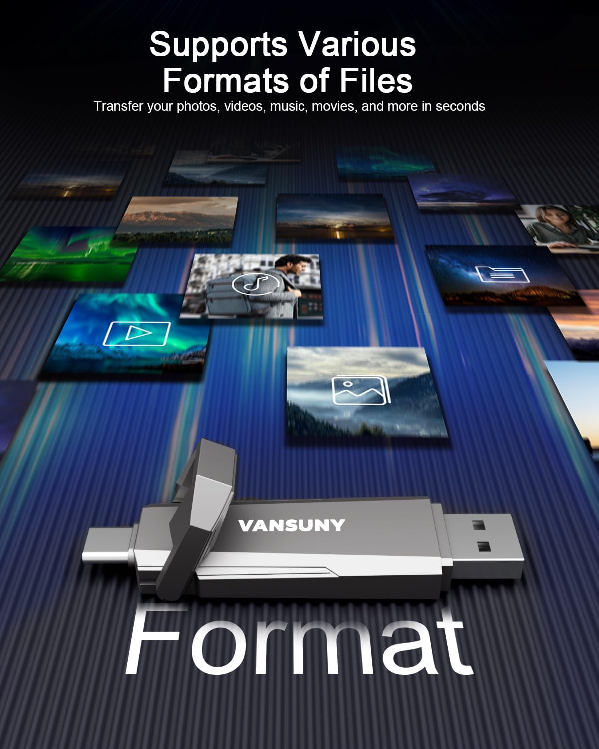 - Fit For All Needs: Designed with dual USB-A and USB-C plugs, this solid state drive meets all your data transfer and storage needs across your USB-C smartphone, iPhone 16, iPad Pro, tablet, laptop, and USB-A computer, Smart TV, in-car audio system