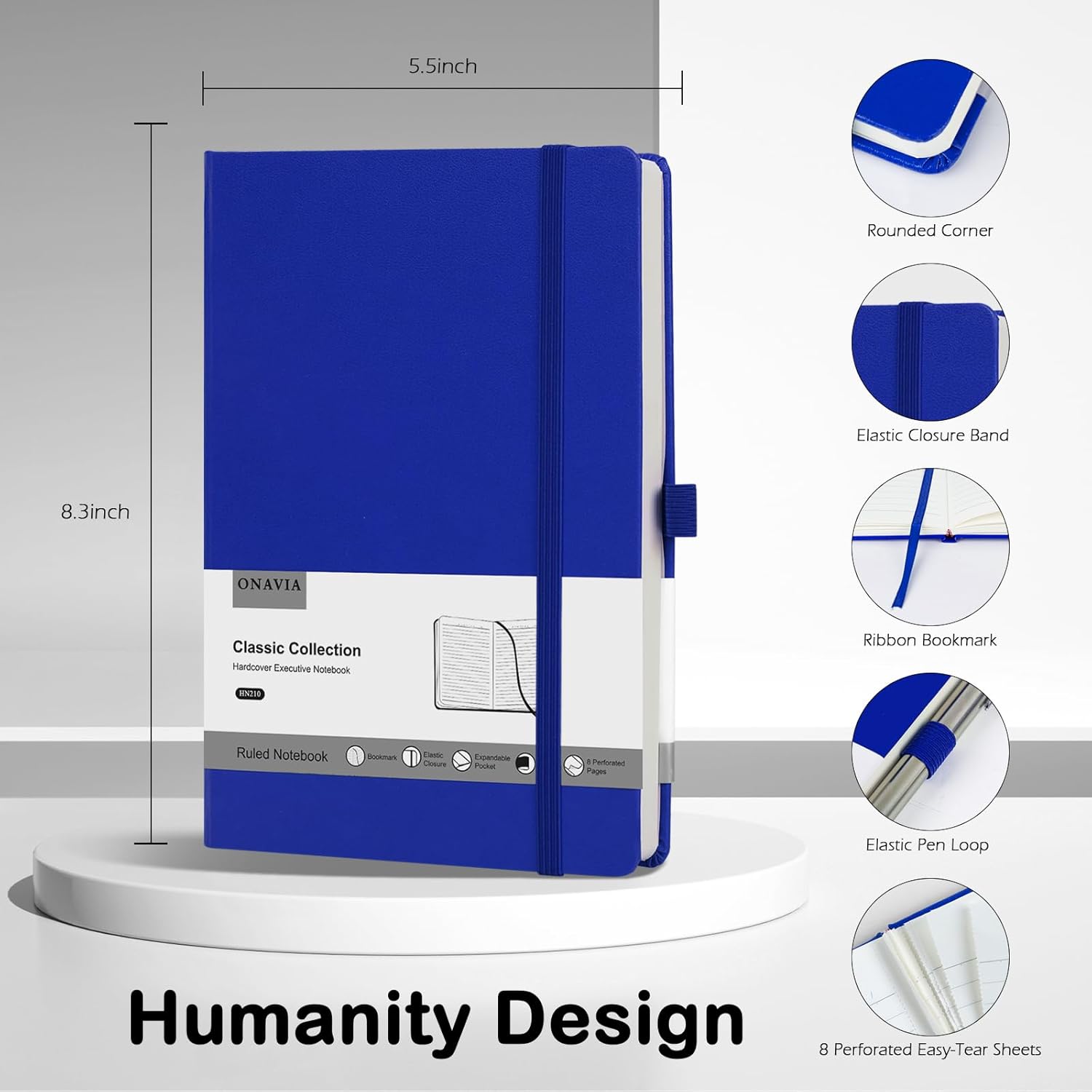 - 【Multi-Pack Hardcover Notebook Journal】ONAVIA 5.5×8.3 inches standard lines notebook features a sturdy and durable hardcover, 80sheets, 160 pages, perfect as gift