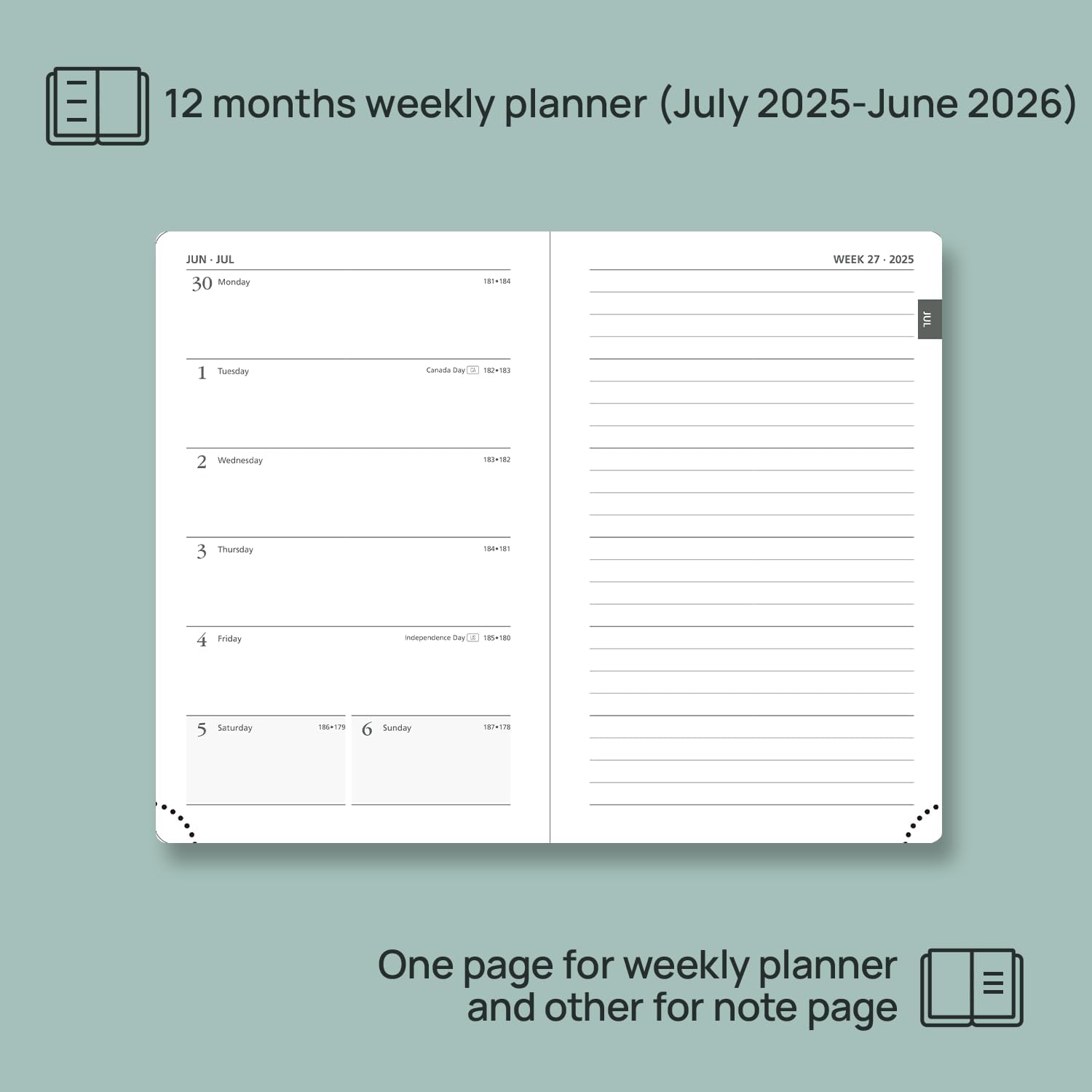 - EXTRA FUNCTION PAGES: This 2025-2026 weekly planner also contains "2025-2026 Yearly Overview" Page + "2025-2026 Holiday & Calendar" Page + Monthly Expenses Page+ Contact & Password Pages + Dotted Notes Pages for jotting down your ideas, thoughts or any other happy things in detail.