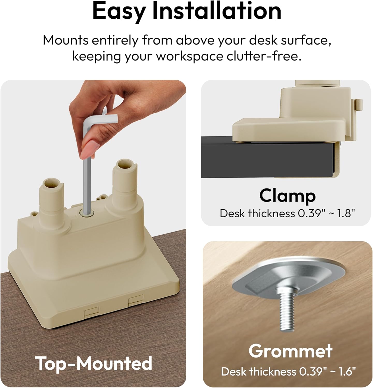 Pixio PS1D Wave Beige Dual Monitor Arm Stand Desk Mount - Fits up to 32 inches Monitors and up to 19.8lbs. VESA Compatibility and Integrated Cable Management