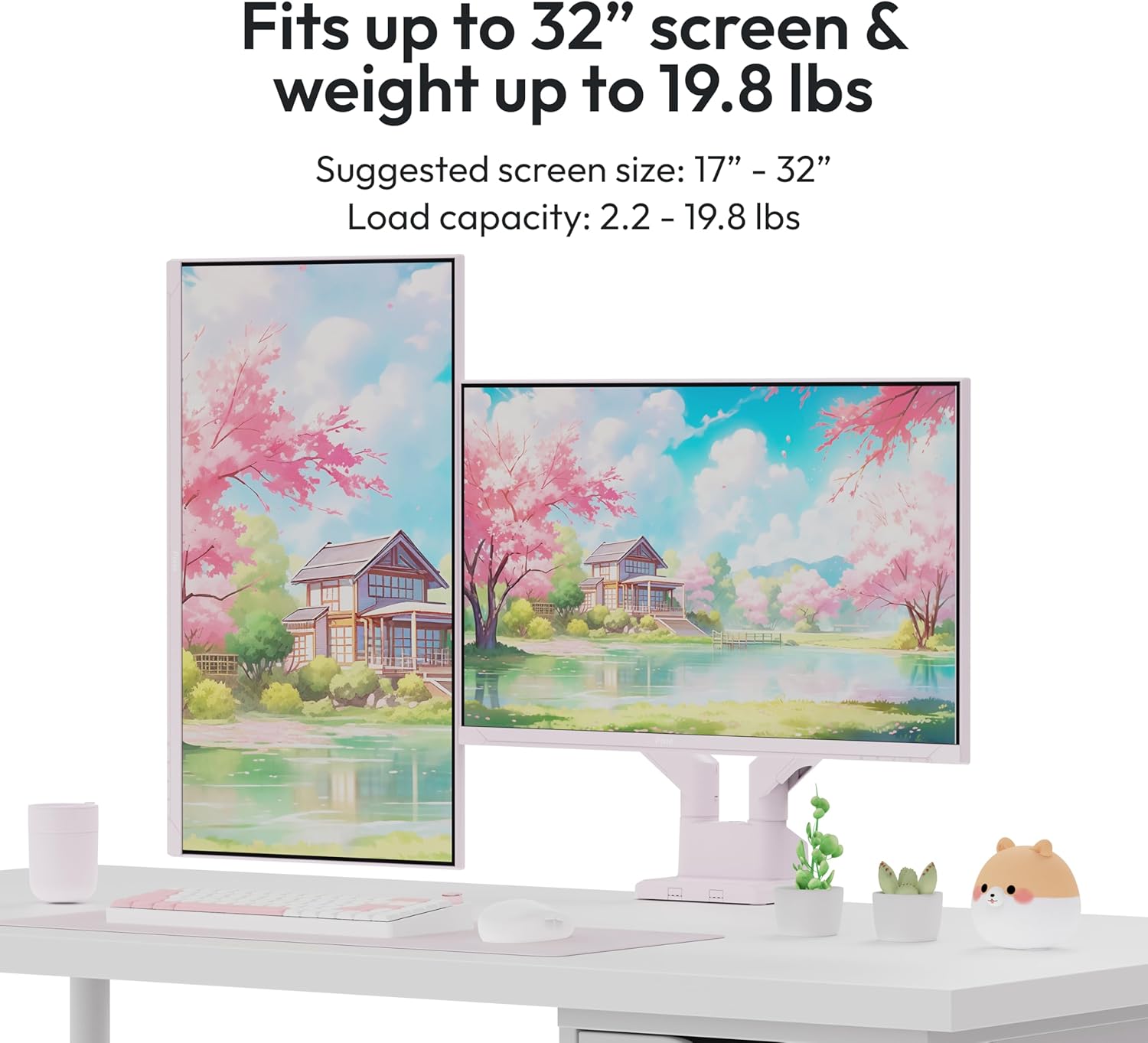 Pixio PS1D Wave Pink Dual Monitor Arm Stand Desk Mount - Fits up to 32 inches Monitors and up to 19.8lbs. VESA Compatibility and Integrated Cable Management