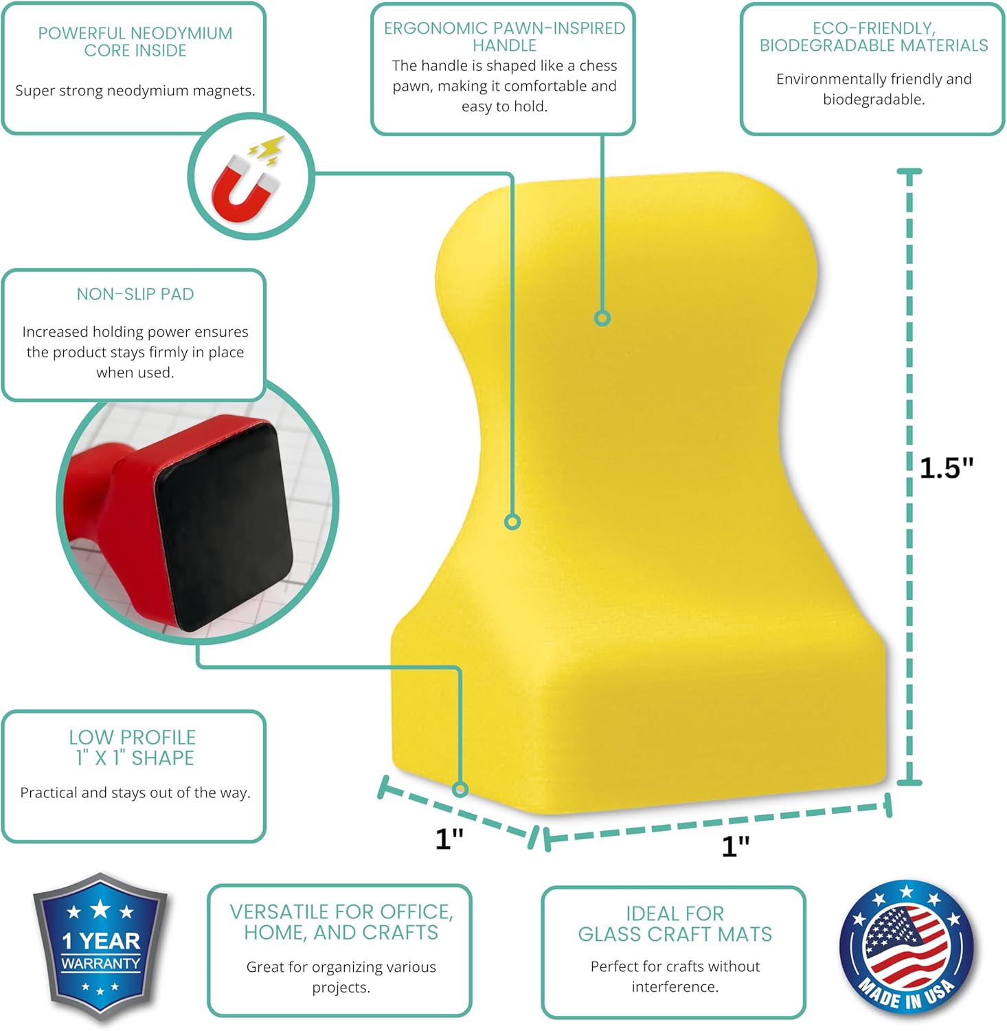 Glassboard Studio MiniPawn Magnet - Strong Neodymium Rare Earth Magnets for Fridge, Whiteboard, Locker & Magnetic Glassboards - Crafting & Office Use - Strong Fridge Magnets (Sunshine Yellow, 12)