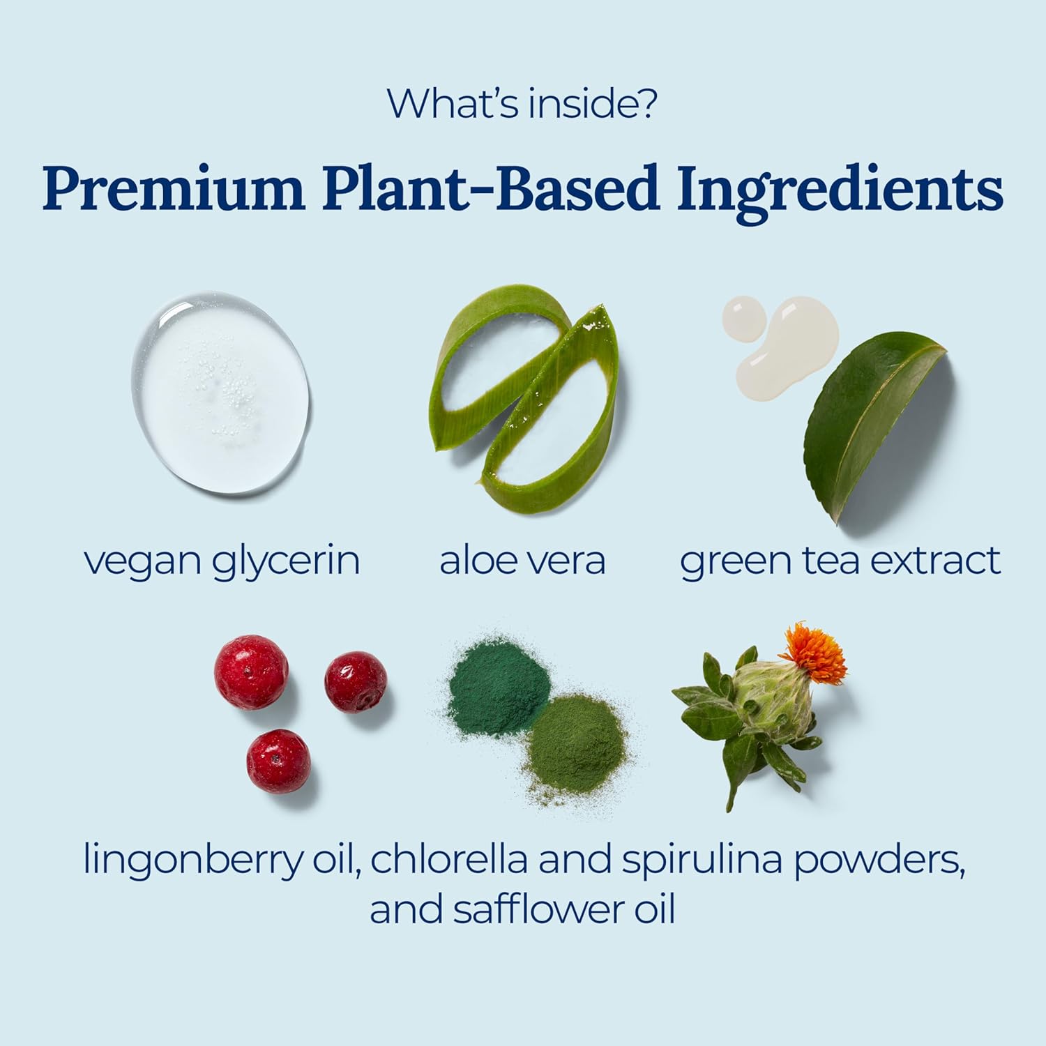 - UNIQUE BLEND: Dive into our unique blend of nine plant-based ingredients, including organic essential oils, anti-aging lingonberry, and antioxidant-rich green tea extract. Moisturizing safflower oil, soothing inner leaf aloe vera, and hydrating vegan glycerin combine with nutrient-dense chlorella and spirulina for an unparalleled hand care experience. Feel nourished, smooth, and refreshed with every use, and enjoy the soothing sandalwood / santal scent.