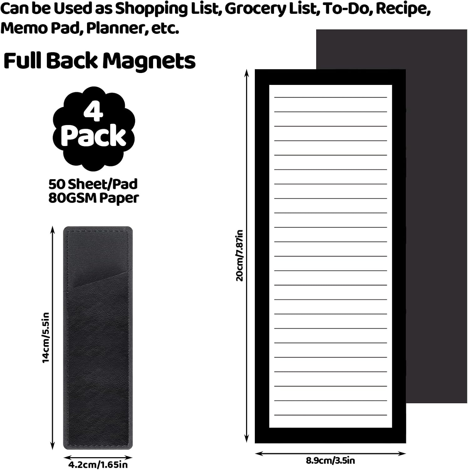 4 Pack Magnetic Note Pad for Fridge with Pen Holder, Totally 200 Sheets Magnetic To Do List, Shopping List, Grocery List, Memo Pads for Refrigerator(Black Border)