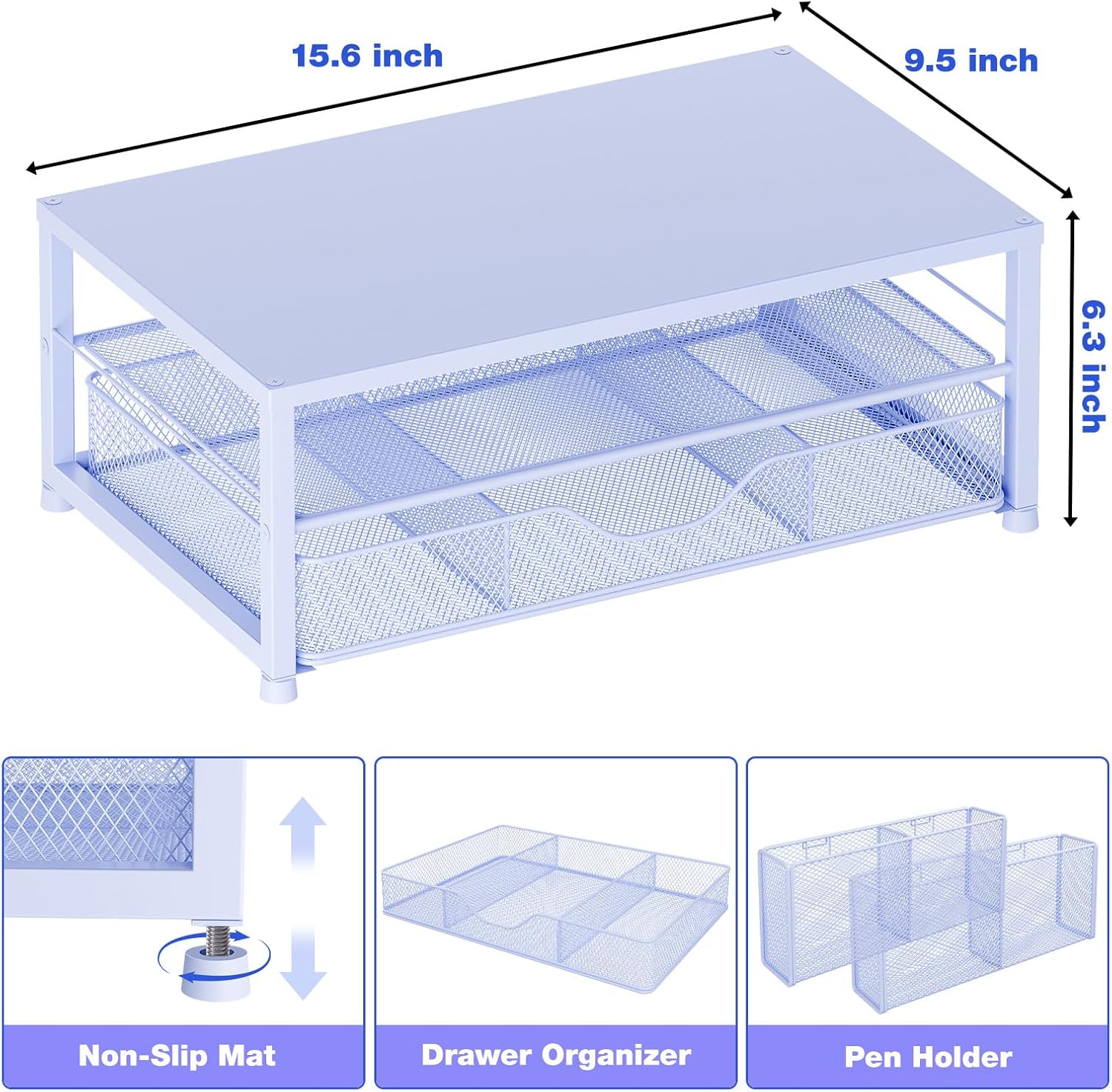 Desk Organizers and Accessories, 2-Tier Computer Monitor Stand Riser with Drawer and 2 Pen Holders, Laptop Stand, Office Desk Accessories for Office Supplies, Blue
