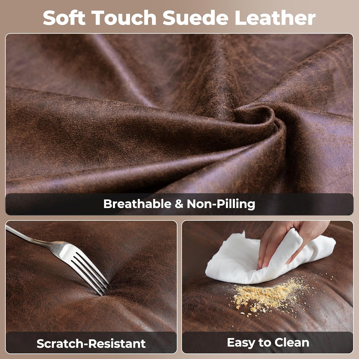 - Soft Touch Leather Fabric: Exquisite and luxurious soft faux leather fabric offers constant softness and comfort, with its unique texture and luster standing out. Featuring breathable, durability, smoothly, scratch-resistant, pet-friendly, non-pilling and easy to clean
