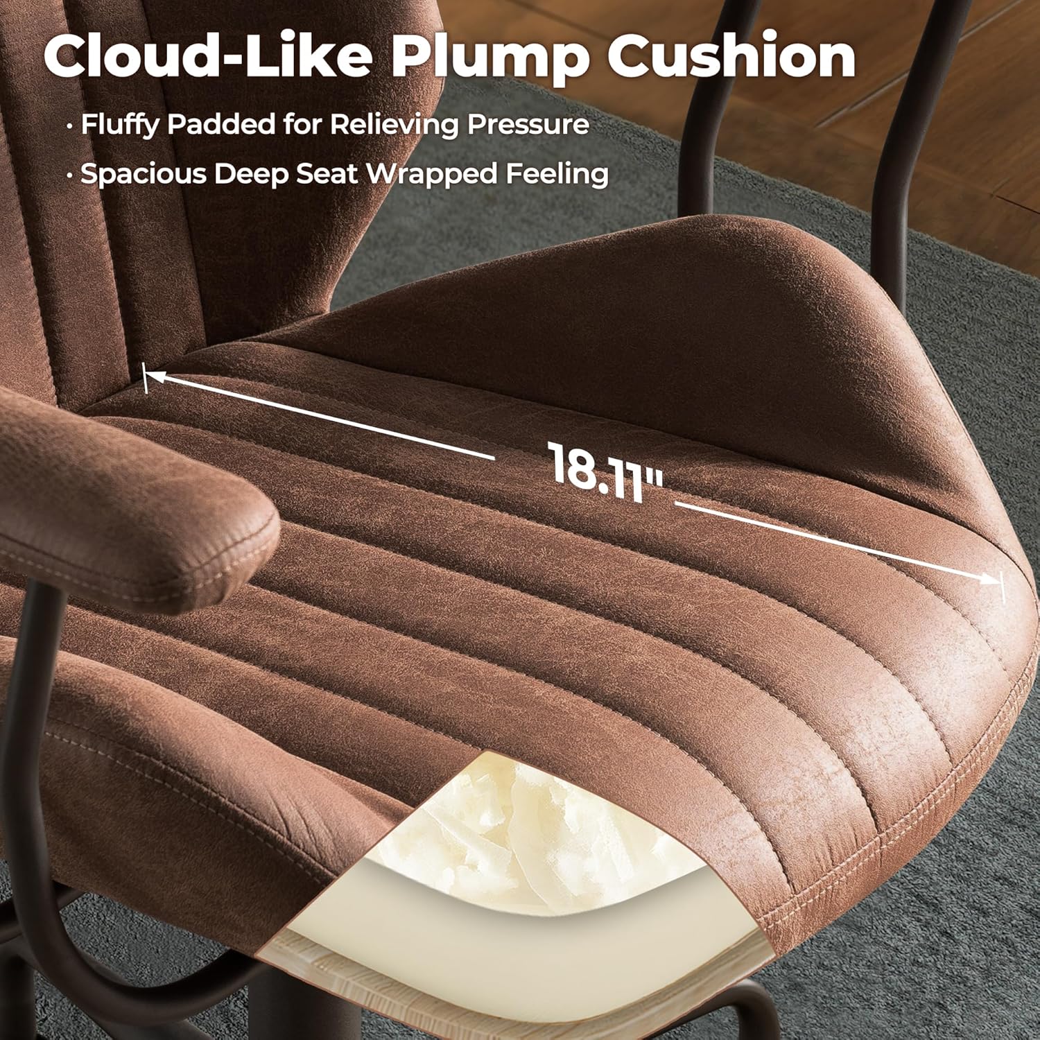 ovios Ergonomic Home Office Chair, Mid-Century Modern Faux Leather Chairs with Padded Armrests, Comfy Mid Back Swivel Rolling Executive Computer Armchair (Dark Brown, Suede Leather)