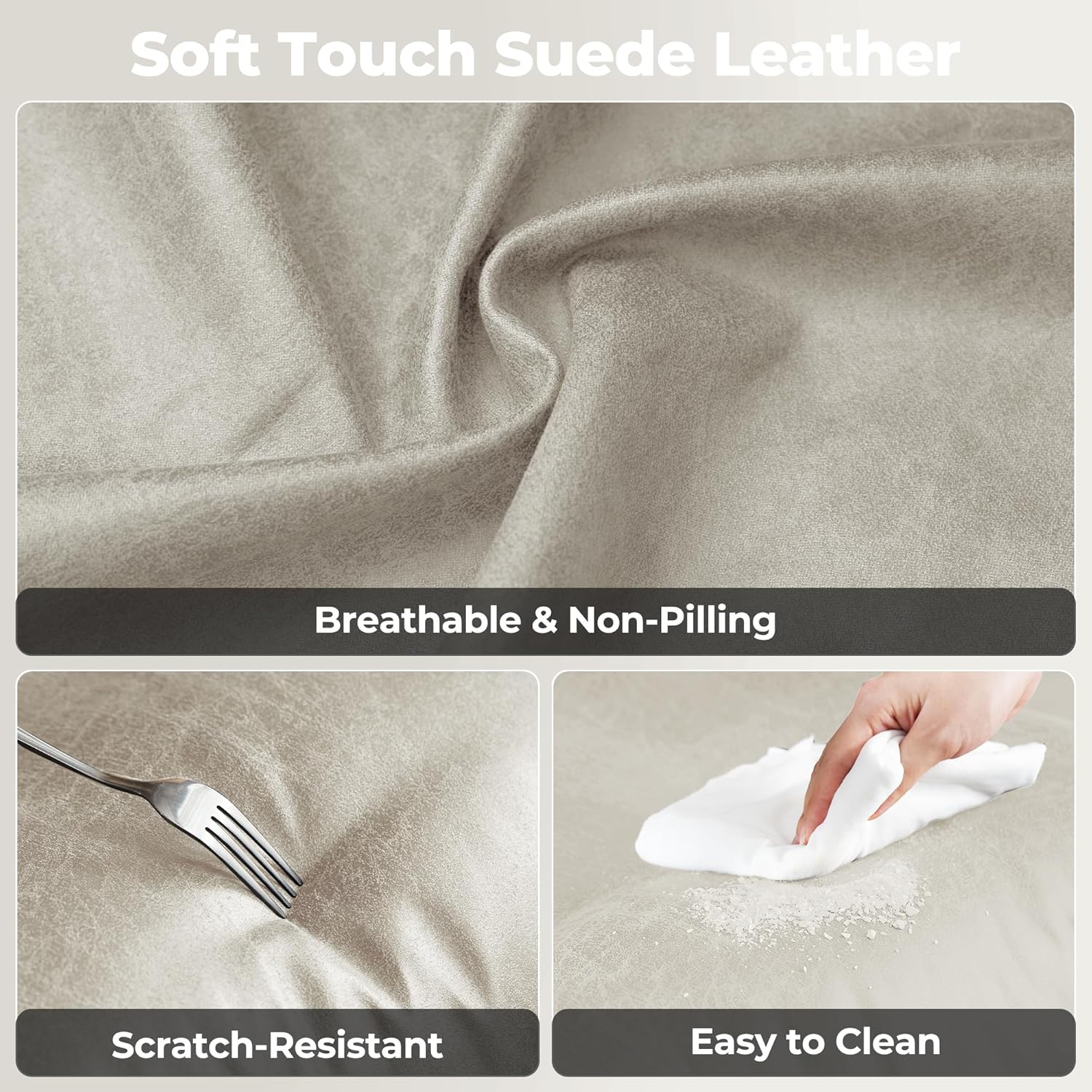 - Soft Touch Leather Fabric: Exquisite and luxurious soft faux leather fabric offers constant softness and comfort, with its unique texture and luster standing out. Featuring breathable, durability, smoothly, scratch-resistant, pet-friendly, non-pilling and easy to clean