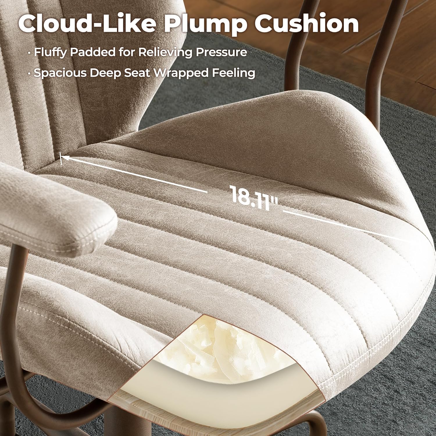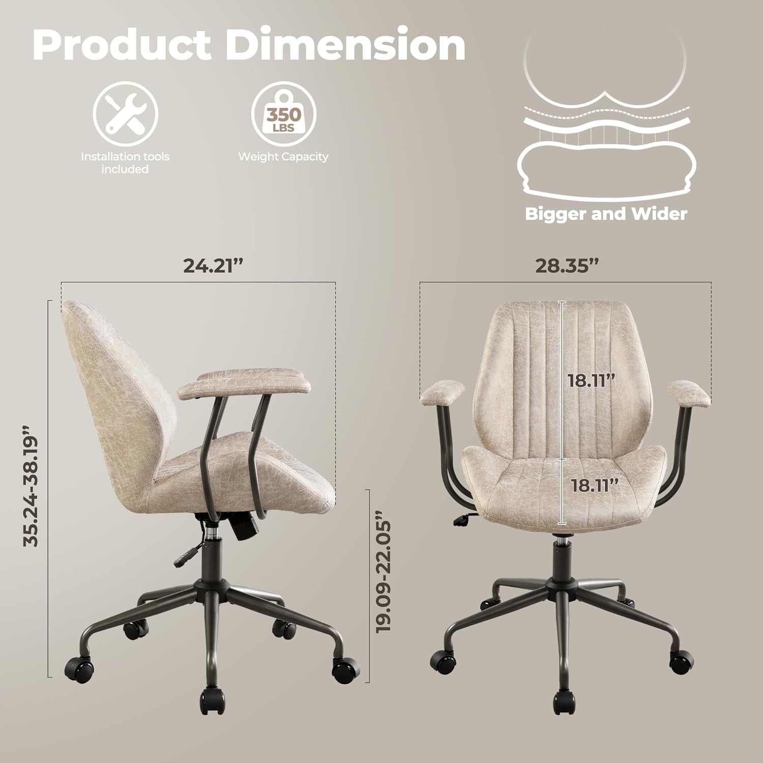 ovios Ergonomic Home Office Chair, Mid-Century Modern Faux Leather Chairs with Padded Armrests, Comfy Mid Back Swivel Rolling Executive Computer Armchair (Beige, Suede Leather)