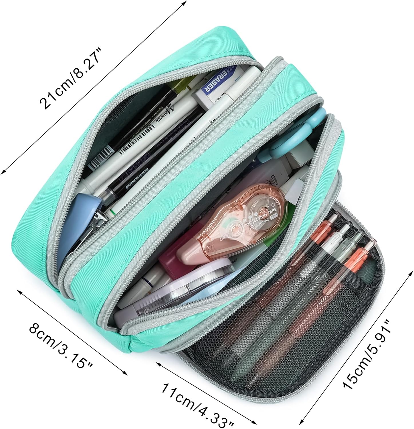 XQXA Pencil Pouch Large Capacity Pencil Case Organizer, Multifunctional Pencil Pouch with 3 Compartmens, Big pencil bags with zipper Office Travel Men Women (01-Mint Green)