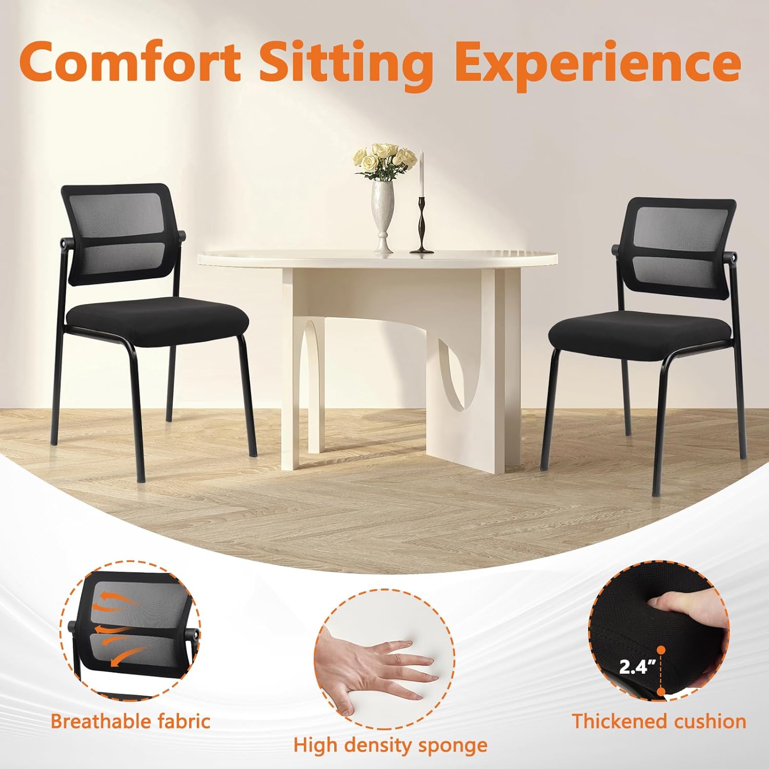 CLATINA Stacking Armless Office Waiting Room Chair with Adjustable Backrest, Stackable Mesh Guest Reception Desk Chairs with Ergonomic Lumbar Support for Conference Lobby Side School, Black, 2 Pack