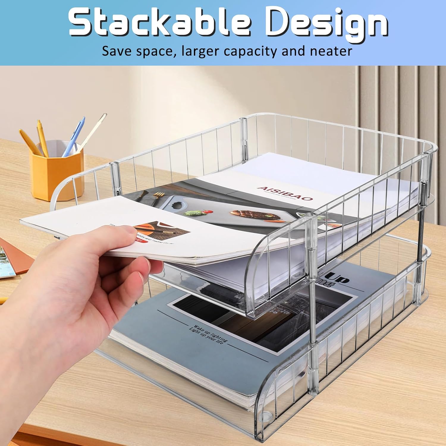 Stackable Letter Tray Papers Organizers, A4 Size Desk Organizer Tray for Letter Paper Stationery Desk Accessories, Plastic Black Paper Holder File Organizer for Office, School, Home (Clear)