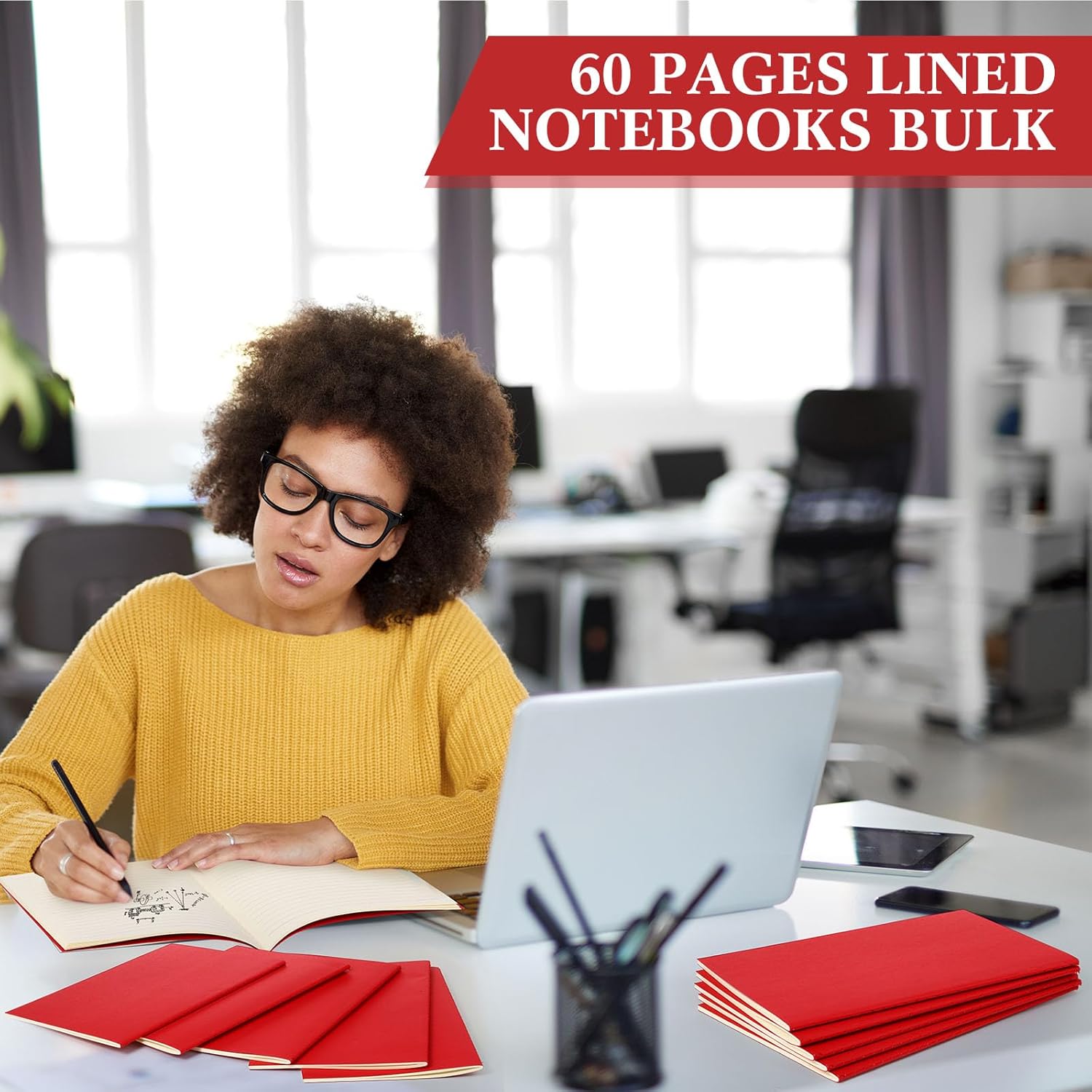 100 Pcs Kraft Notebook Journals 5.5 Inch x 8.3 Inch A5 Softcover Notebooks Bulk for Writing Sketch Office Notepad with 60 Pages 30 Sheets (Multicolor,Lined) (Red,Lined)