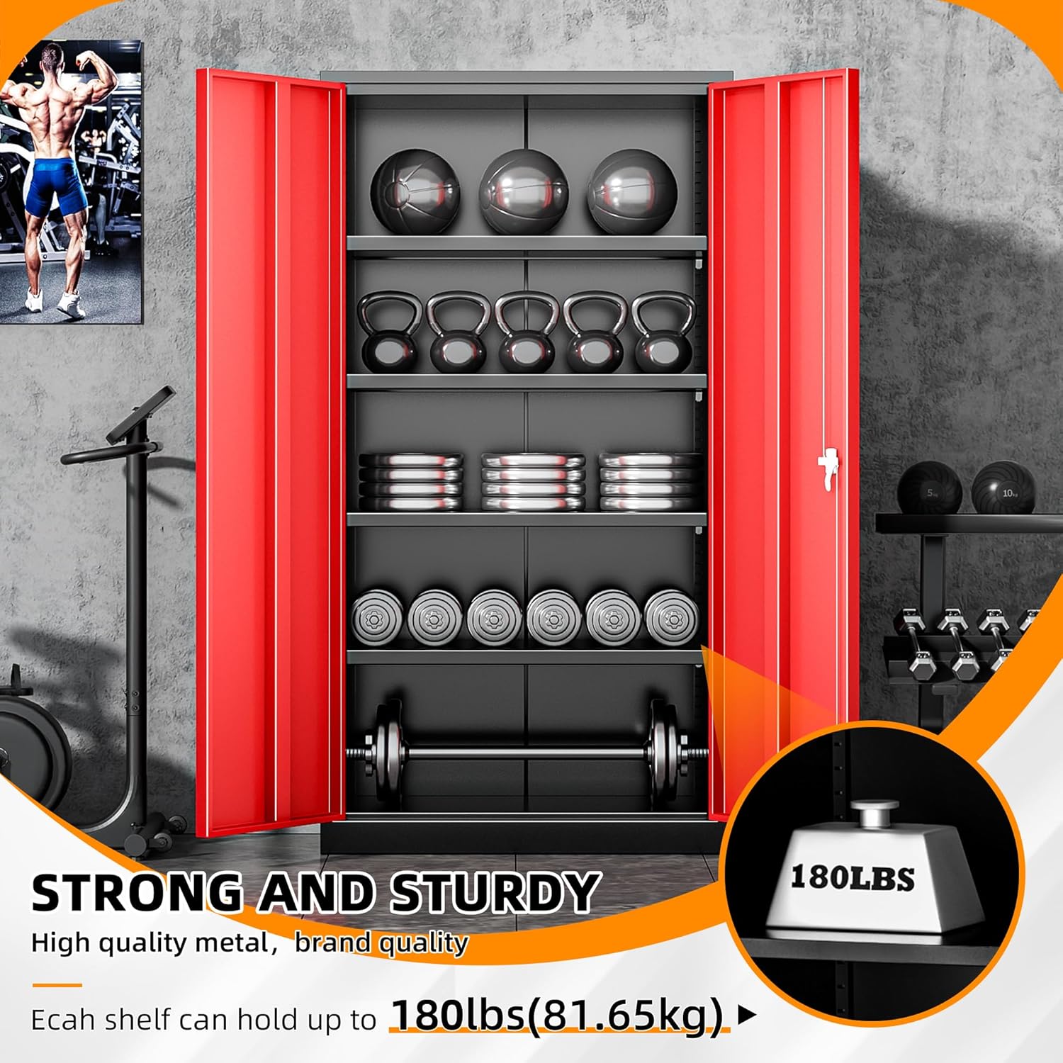 INTERGREAT Garage Storage Cabinet with Lockable Door, 72" H Metal Locking Cabinets with 4 Adjustable Shelves,Black Red Steel Cabinets Storage for Home Office, Warehouse,School