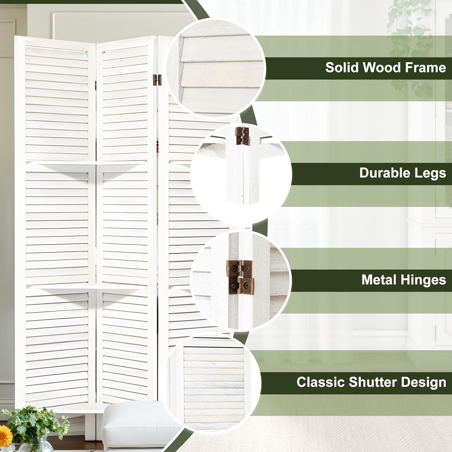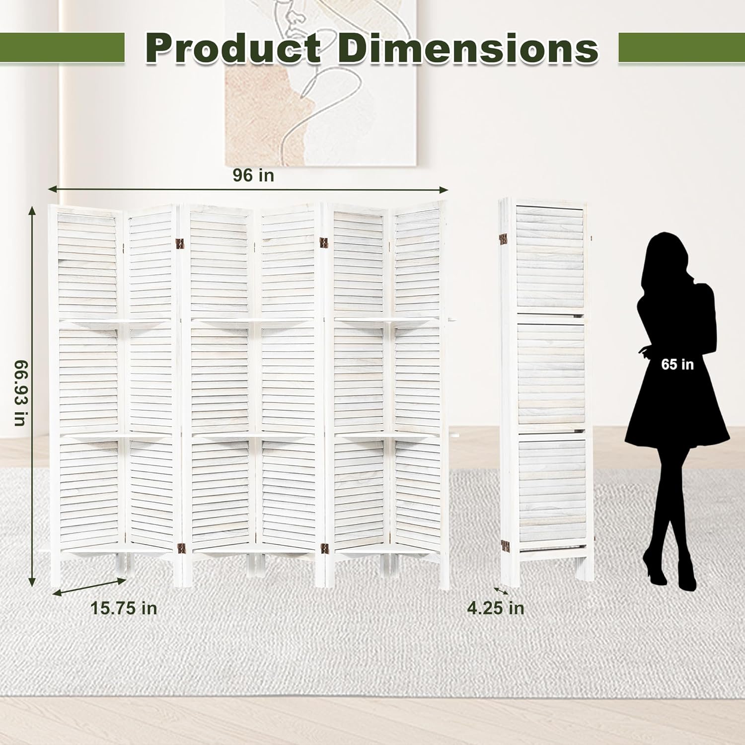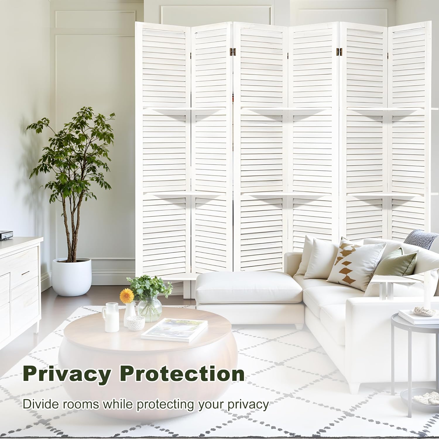 NicBex 6 Panel Room Divider,5.6FT Wood Carved Room Dividers with Display Shelves Folding Privacy Screens Portable Freestanding Partition Wall Dividers for Room Separation,Home Bedroom Office,White