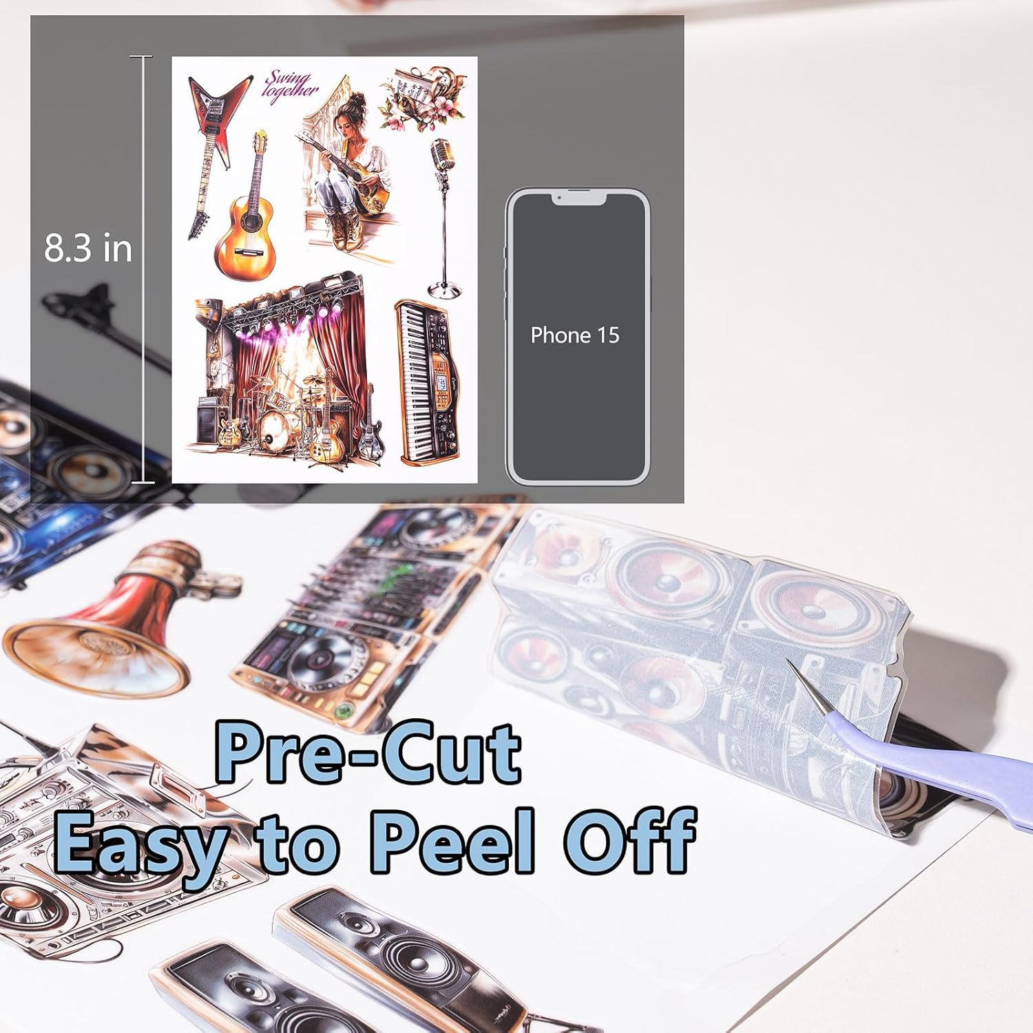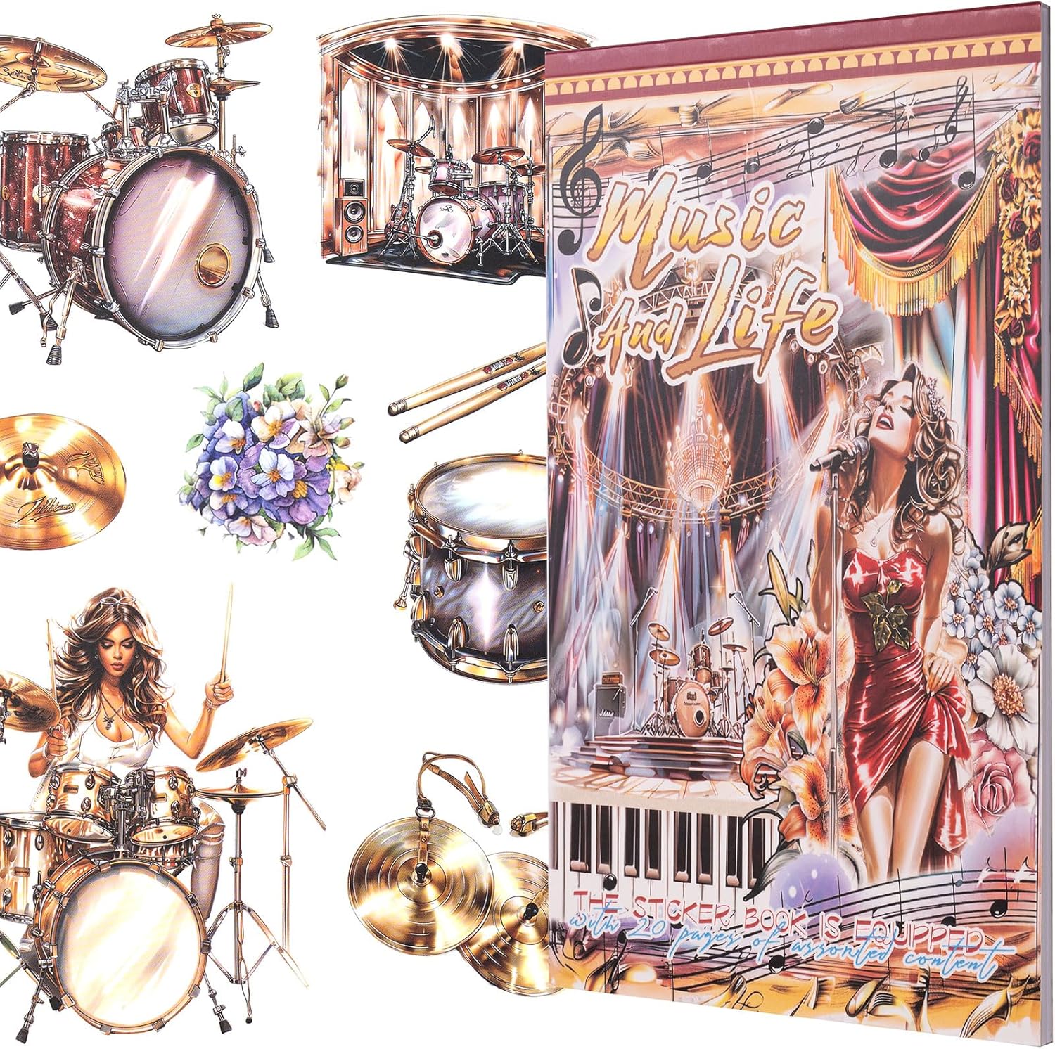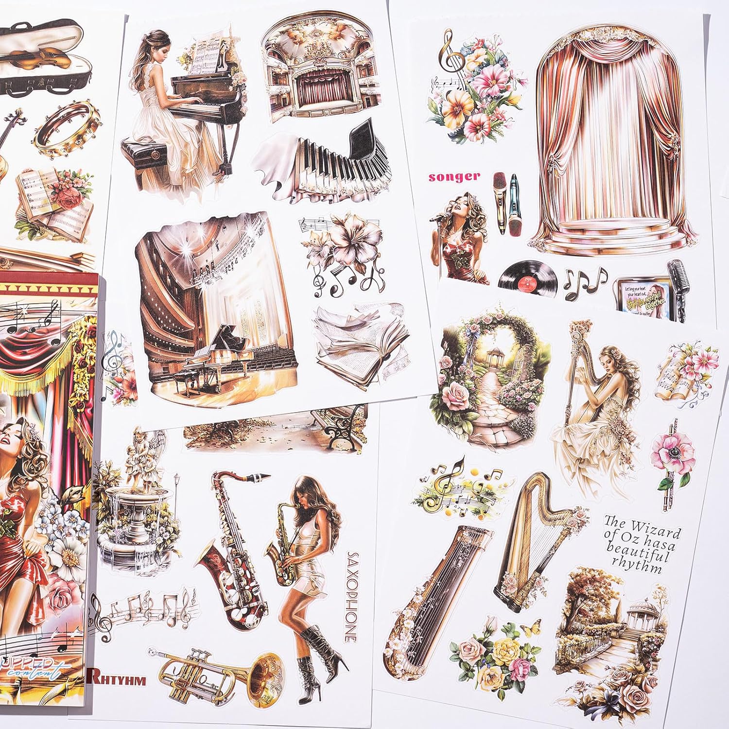 YagCu Journal Sticker Book, Music Life Scrapbook Stickers, Junk Journal Supplies, Pre-Cut Aesthetic Scrapbooking and Journaling for Women, Decorative Ephemera Bullet Planner DIY Arts