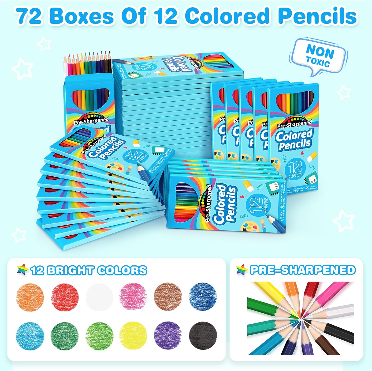 864 Count Colored Pencils Bulk, 72 Pack Colored Pencils for Kids, Pre-sharpened Coloring Pencils in 12 Vibrant Colors, Bulk School Supplies for Teachers, Classroom Prizes, Drawing Art Supplies