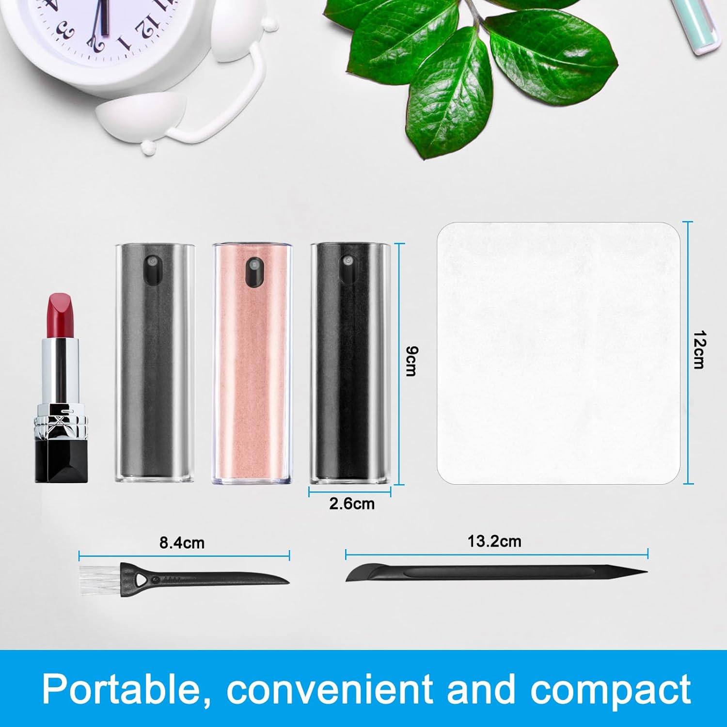 - 2 in-1 Screen Cleaner Kit (Set of 3): All-in-1 cleaning tool that includes 3 Pieces Cleaner sprays with 10ml solution in them and covering microfiber cloth on its face layer; A cleaning pen for Airpods and IOS/ Android Charging Port; Small keyboard brush, and soft plush glasses clean cloth. 3 Pack item offers you the change to share with friends.