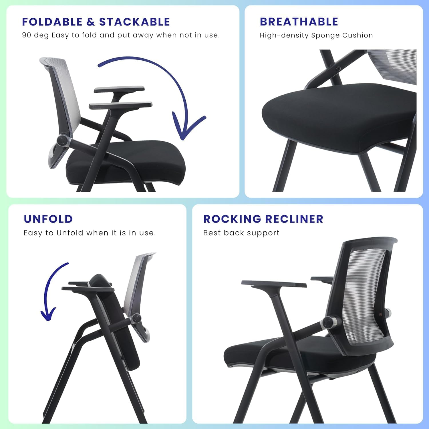 2 Pack Stackable Conference Room Chairs with Paddle Folding Office Foldable Desk Chair Mesh Back and Arms for Conference Meeting Guest Reception Home Office Training Room Chair Black