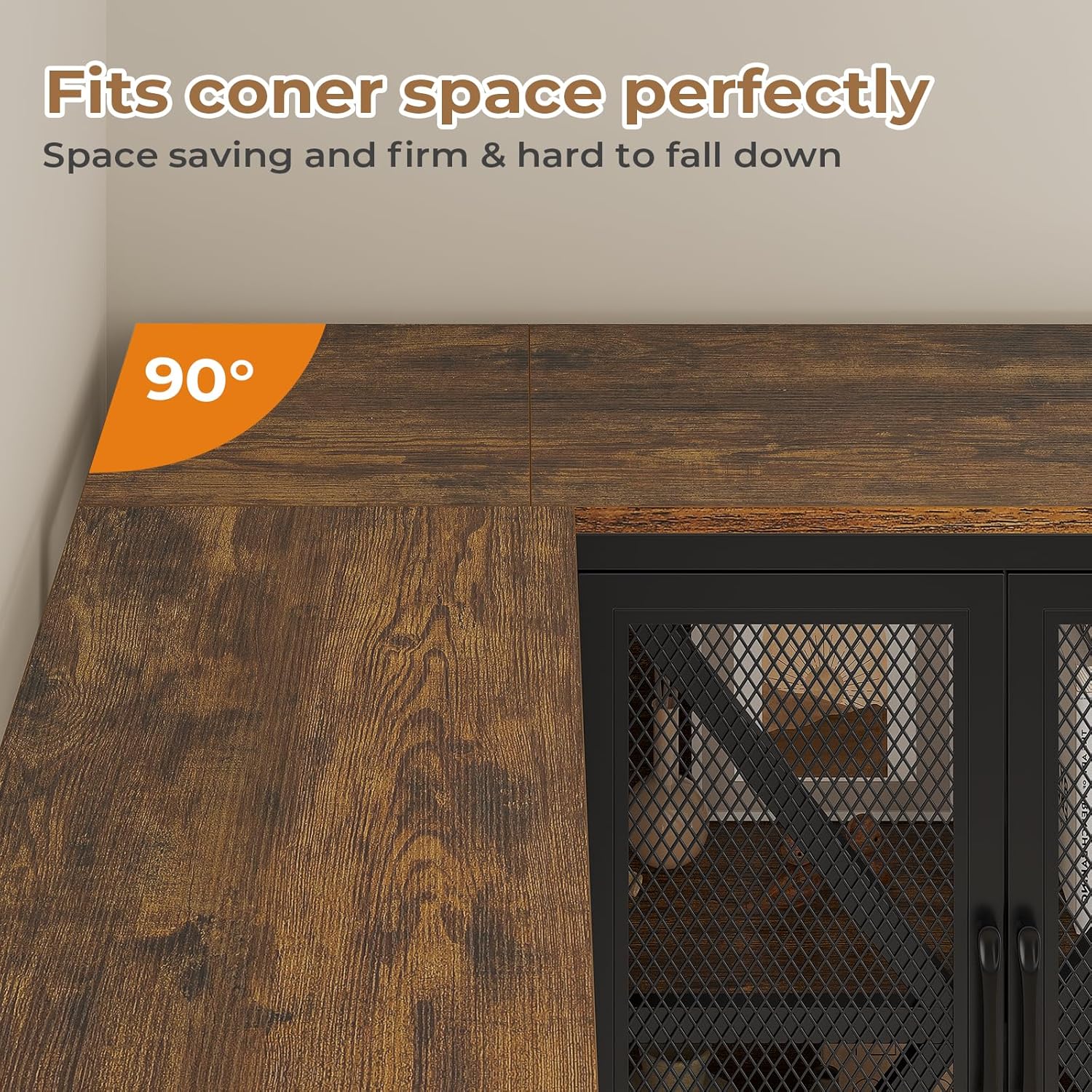 Corner Bookshelf, 6 Tier Industrial Convertible Bookshelf with 6 Fabric Drawers, Corner Bookcase Large L Shaped Storage Display Shelf for Home Office, Living Room, Kitchen, Rustic Brown